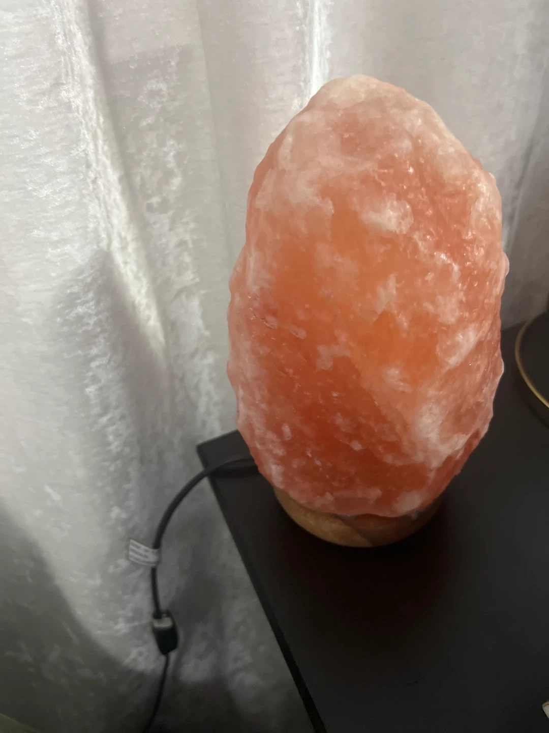 Selling a Himalayan salt lamp! It gives off a warm, calming glow and looks great on a bedside table or shelf. It's in excellent condition and ready to brighten up your space