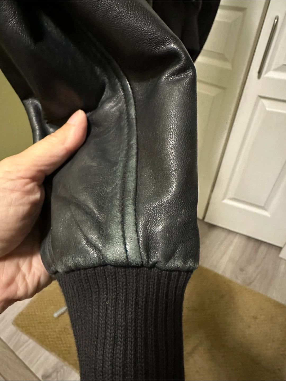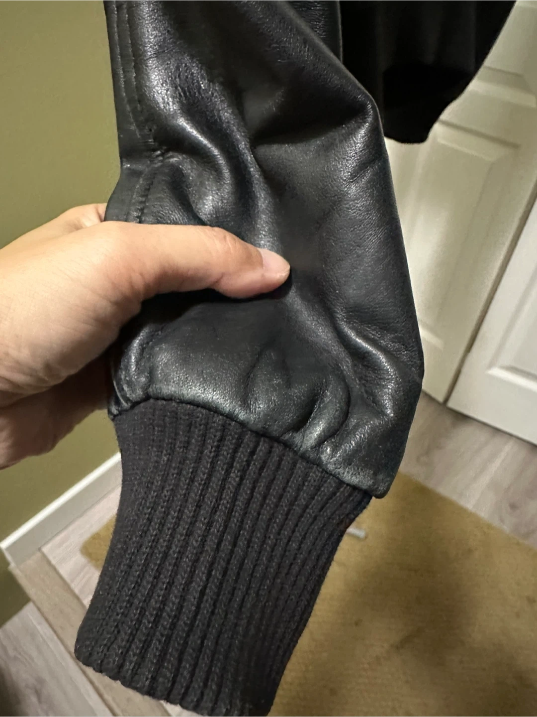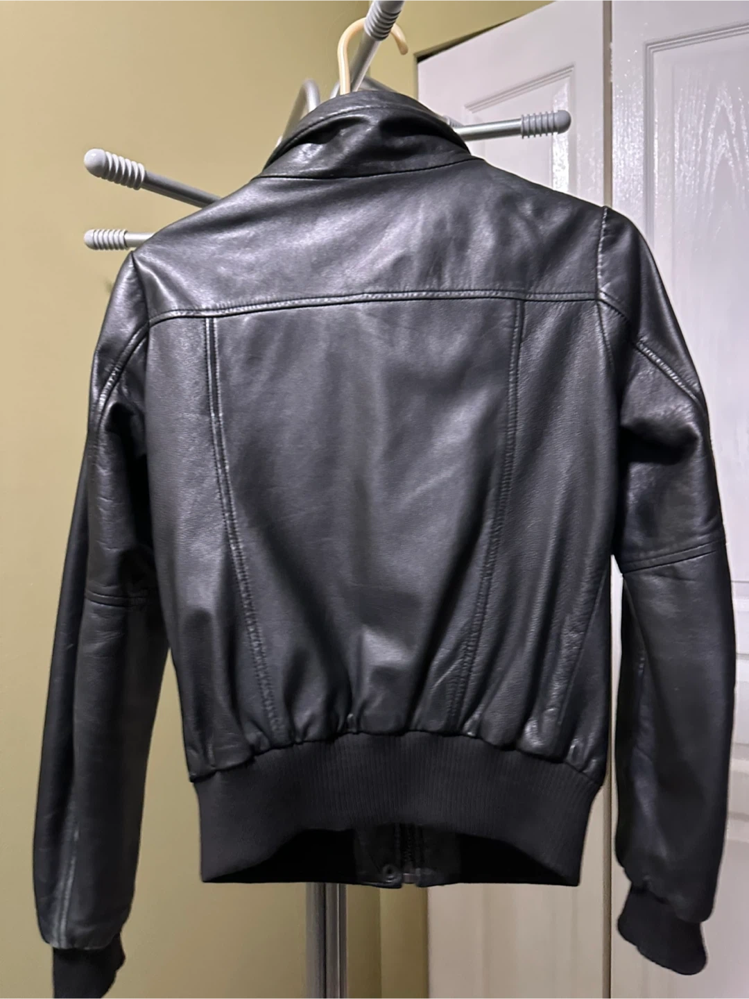 Selling a Zara Basic black leather bomber jacket in size medium. (I guess it fits up to 120 pounds, 1.6 m tall) The outershell is 100% leather and the lining is 100% polyester. It's in good condition and all zippers work. Very soft to touch. However, there is scuff around both sleeves, and the price is adjusted accordingly