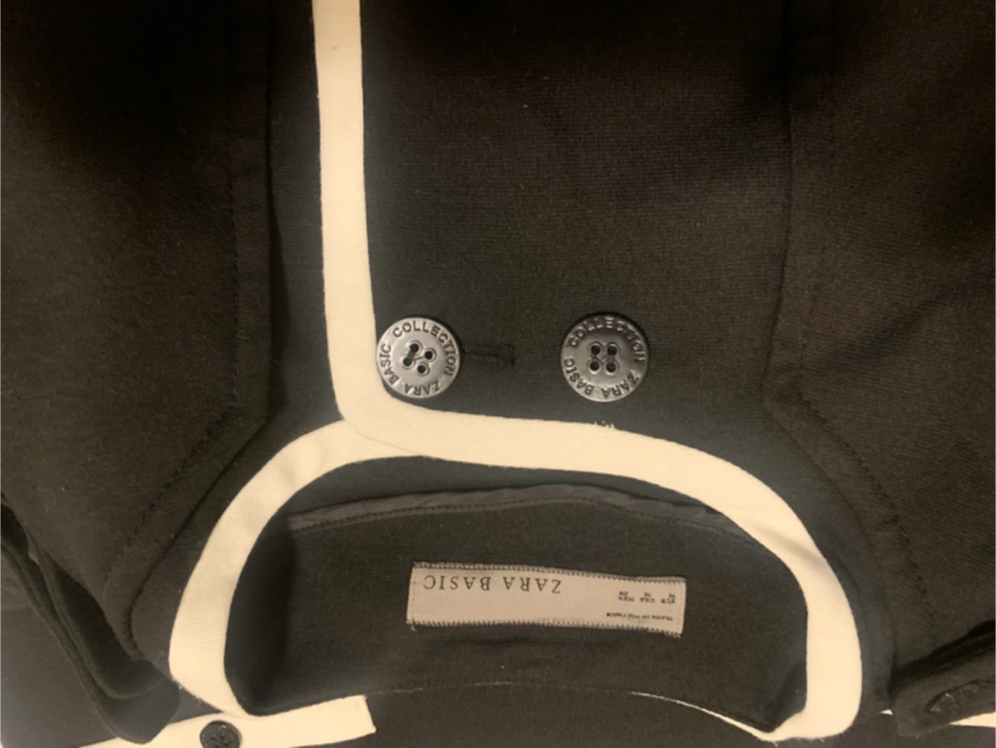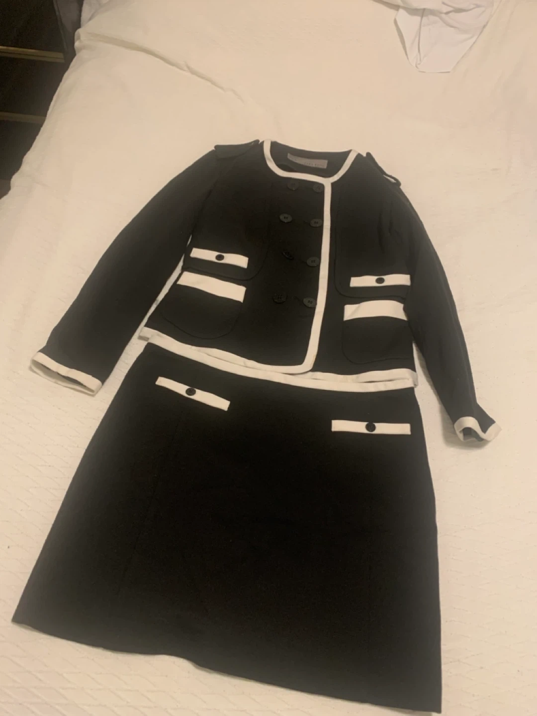 133Bought for $185. Used just once. Selling a Zara Basic skirt suit in size L. The suit is black with white trim and includes both the skirt and jacket. It's in great condition and ready for a new home!
