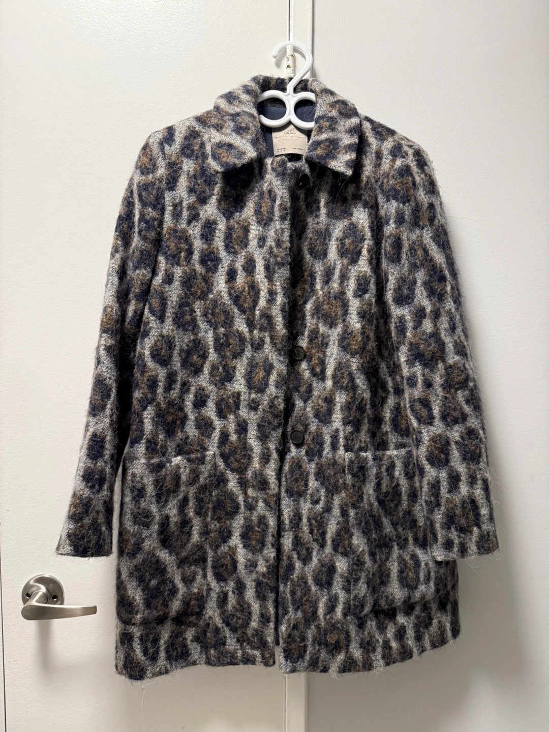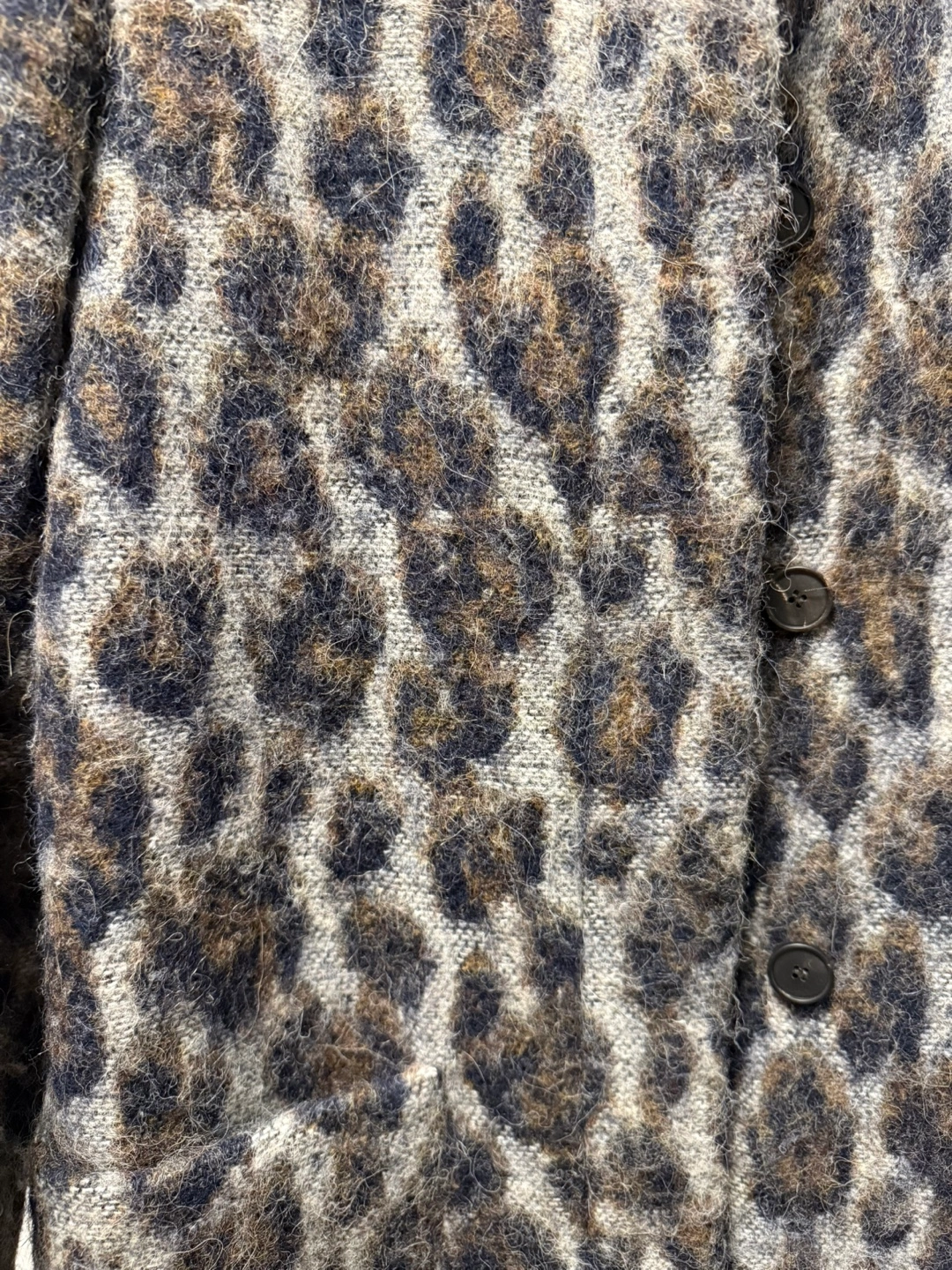 65Women's leopard print coat. Size Medium. Made in Spain. Soft, fuzzy material. Button closure. Patch pockets.