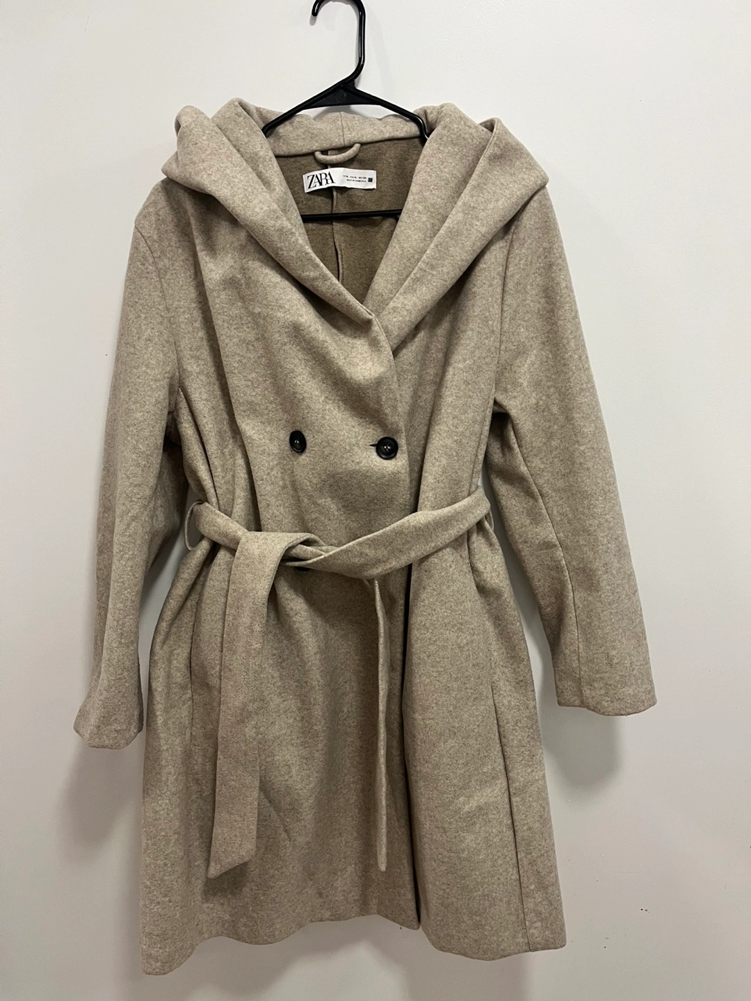 Show allZara Beige Hooded Double-Breasted Belted Coat