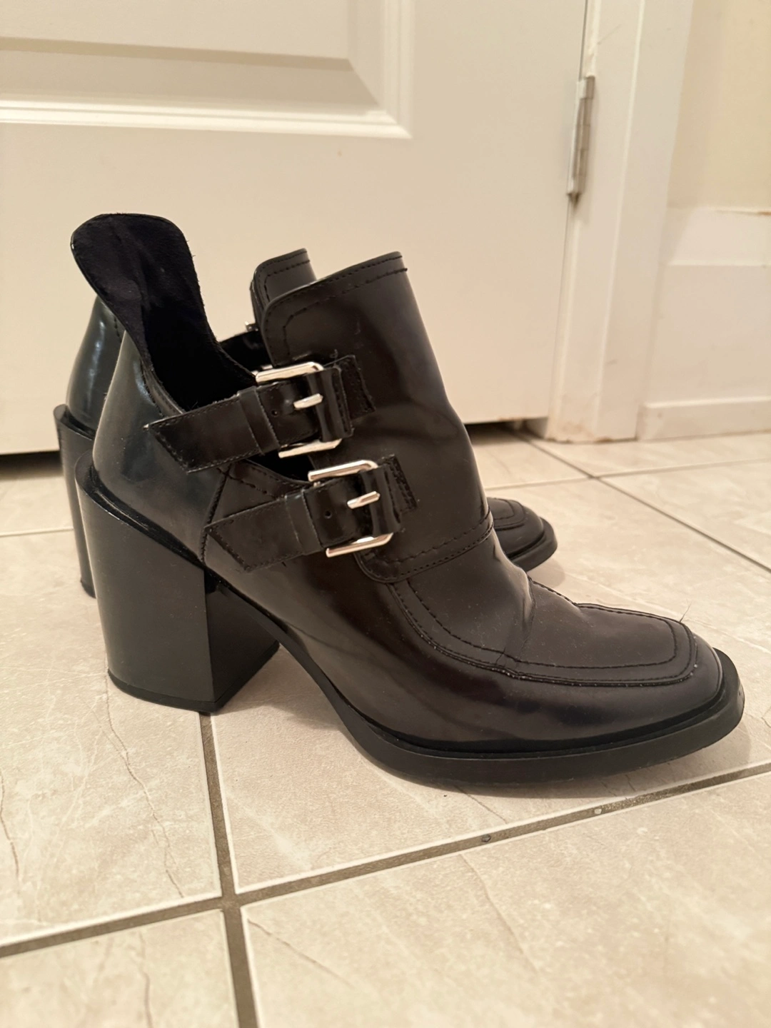 150These black ankle boots are in great condition and ready for a new home! They feature a stylish design with buckle details and a comfortable block heel. Perfect for adding a touch of edge to any outfit!