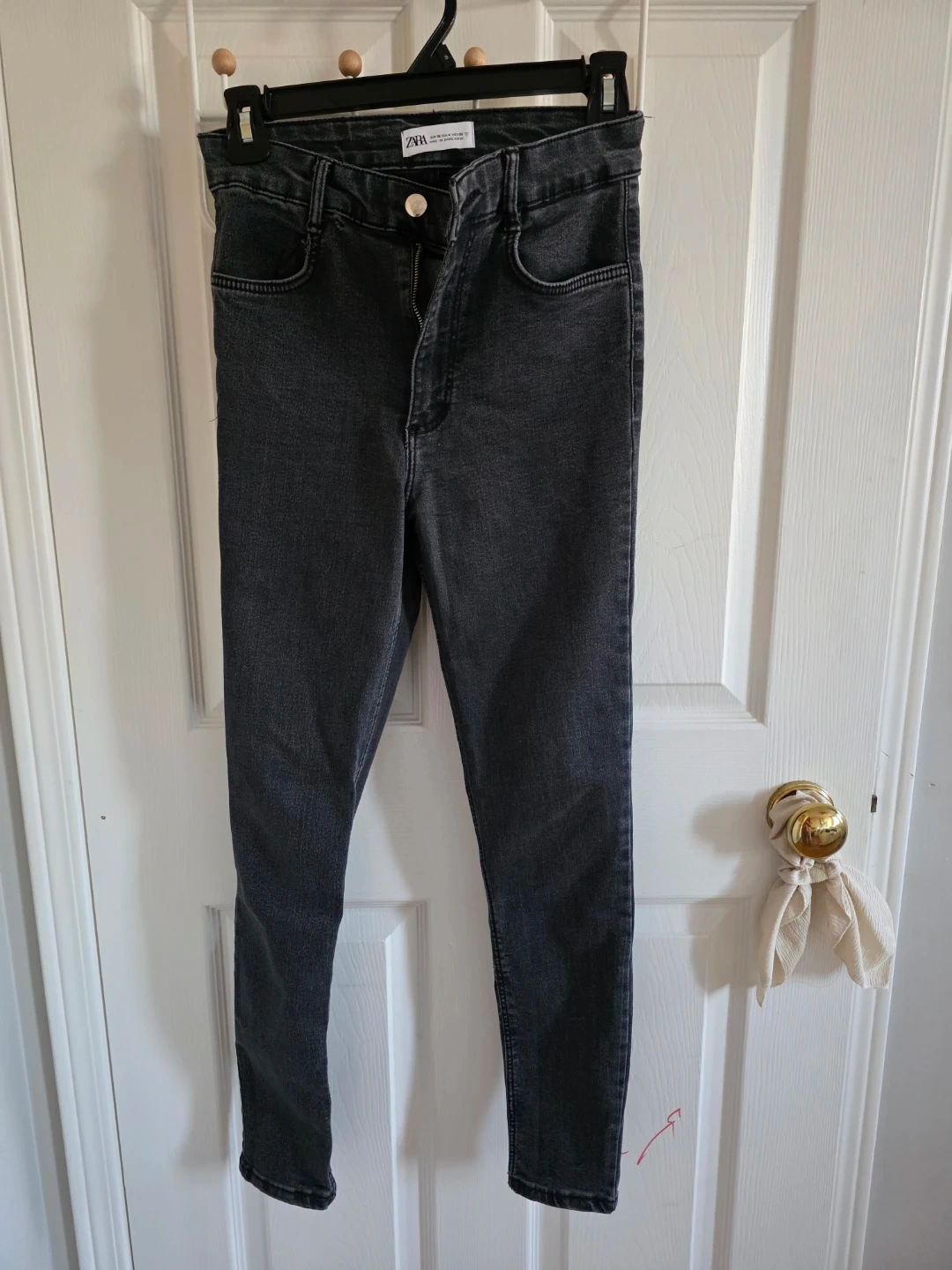 87Selling a pair of Zara black denim jeans. The size is EUR 36, USA 4, and MEX 26. They're in great condition and ready for a new home!