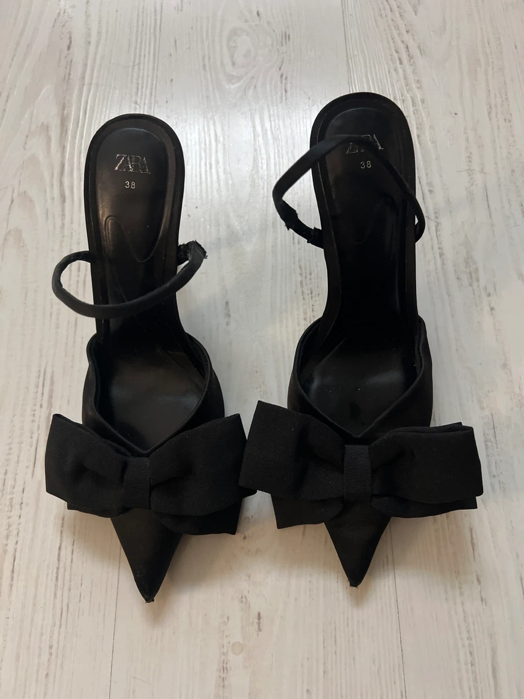 10Cute Zara black heels in size 38! They feature a stylish bow detail and are in great condition. Perfect for a night out or a special occasion