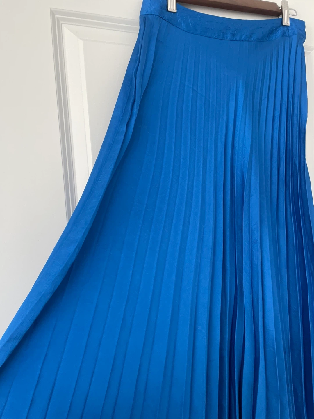 Selling a Zara blue pleated skirt in size M. It's in great condition and would be a lovely addition to your wardrobe! The skirt is made in Turkey.