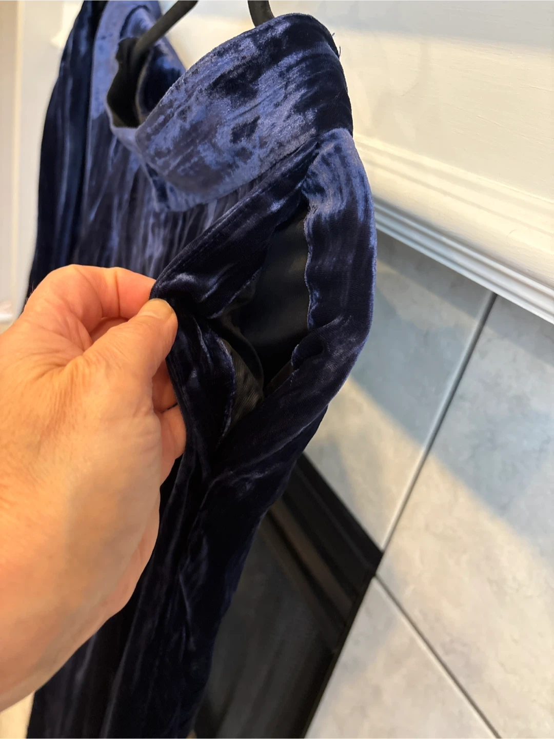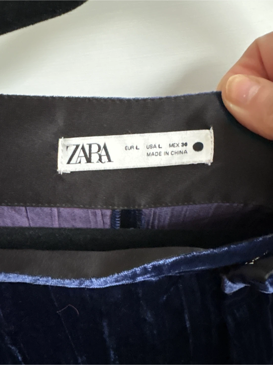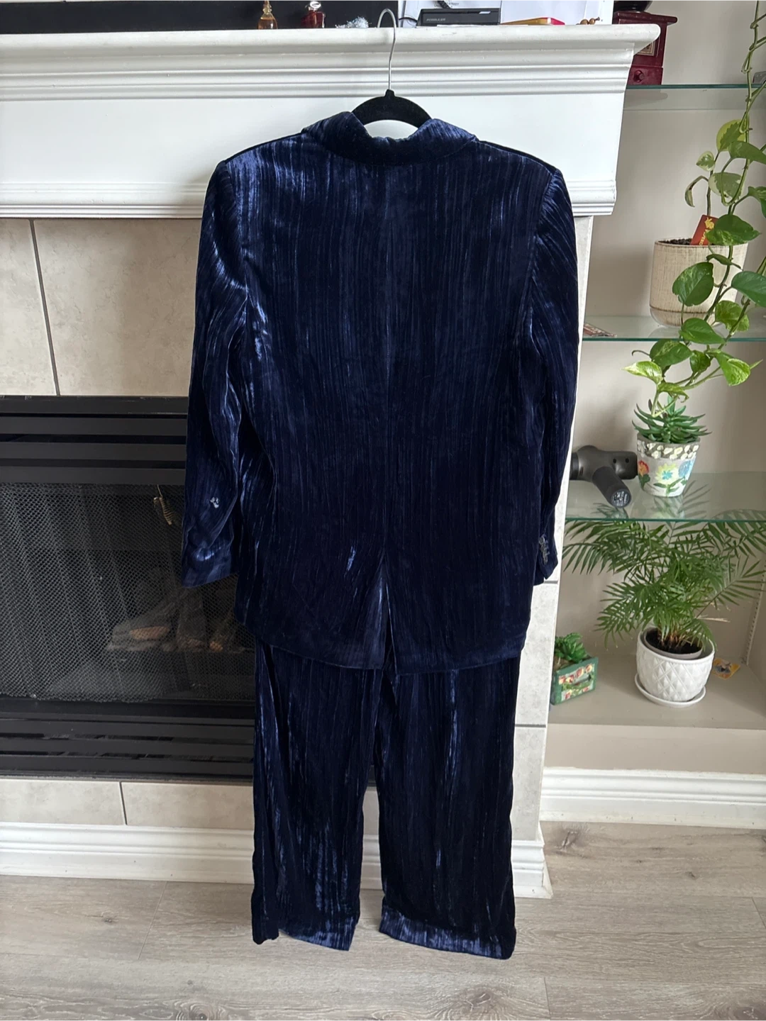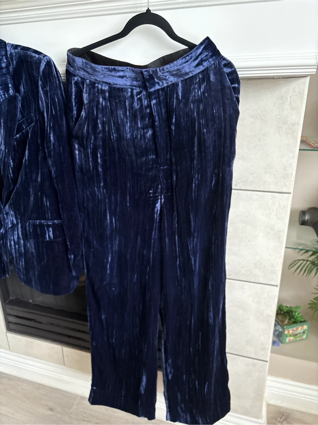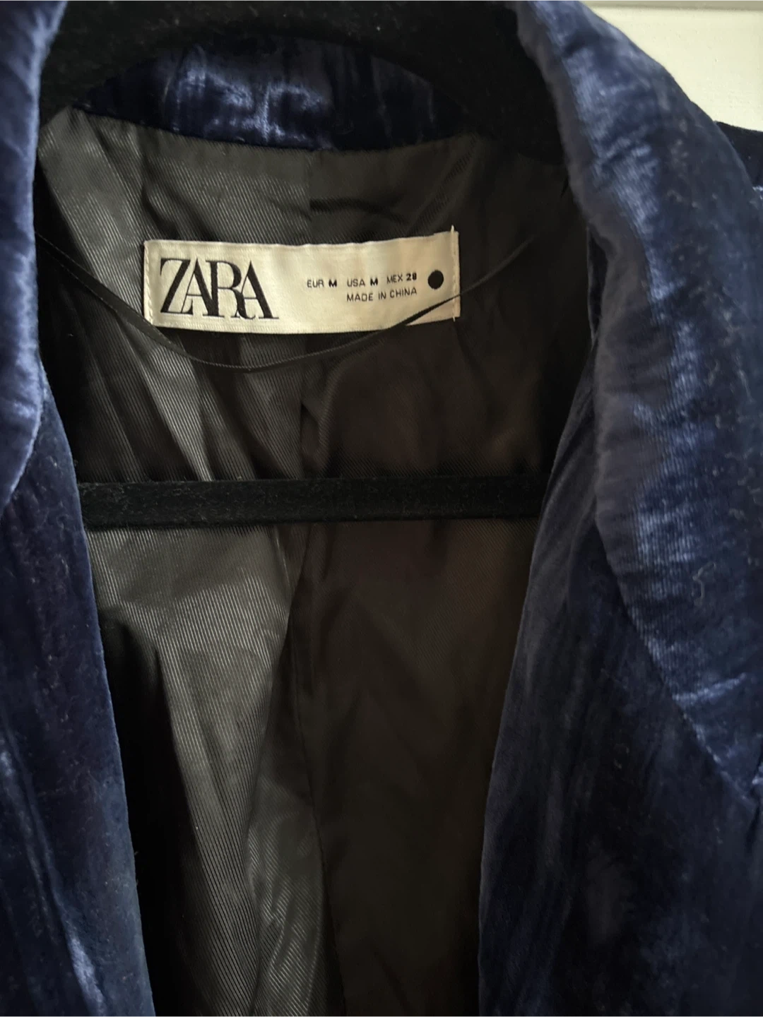17Selling a stylish Zara blue velvet suit, including both the blazer and pants. The blazer is size M and the pants are size L. This suit is in great condition and perfect for a night out or special occasion!