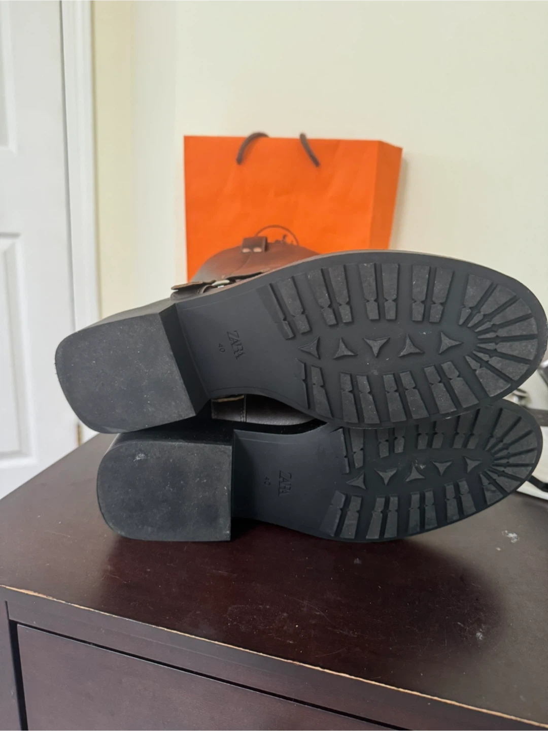 Selling a pair of Zara biker boots in size 40. They're a stylish brown leather and in good new condition.Never been worn Great for adding an edge to any outfit!