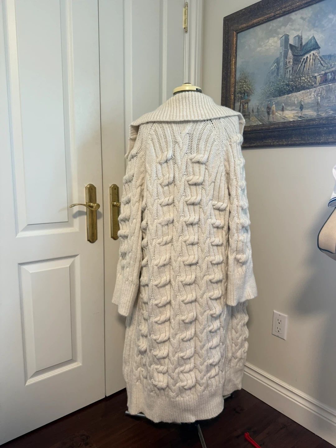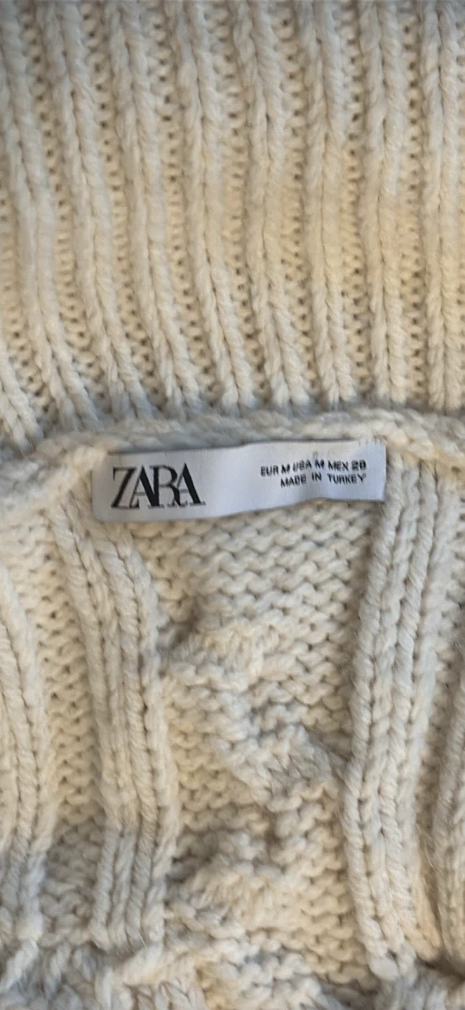 68Selling a lovely Zara cable knit long cardigan in a size medium. It's a beautiful cream colour and features a cozy, oversized collar. Perfect for layering during the cooler months!