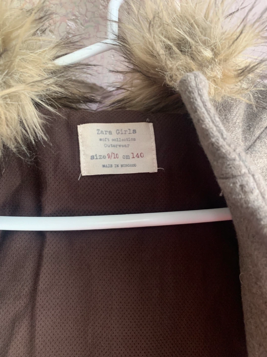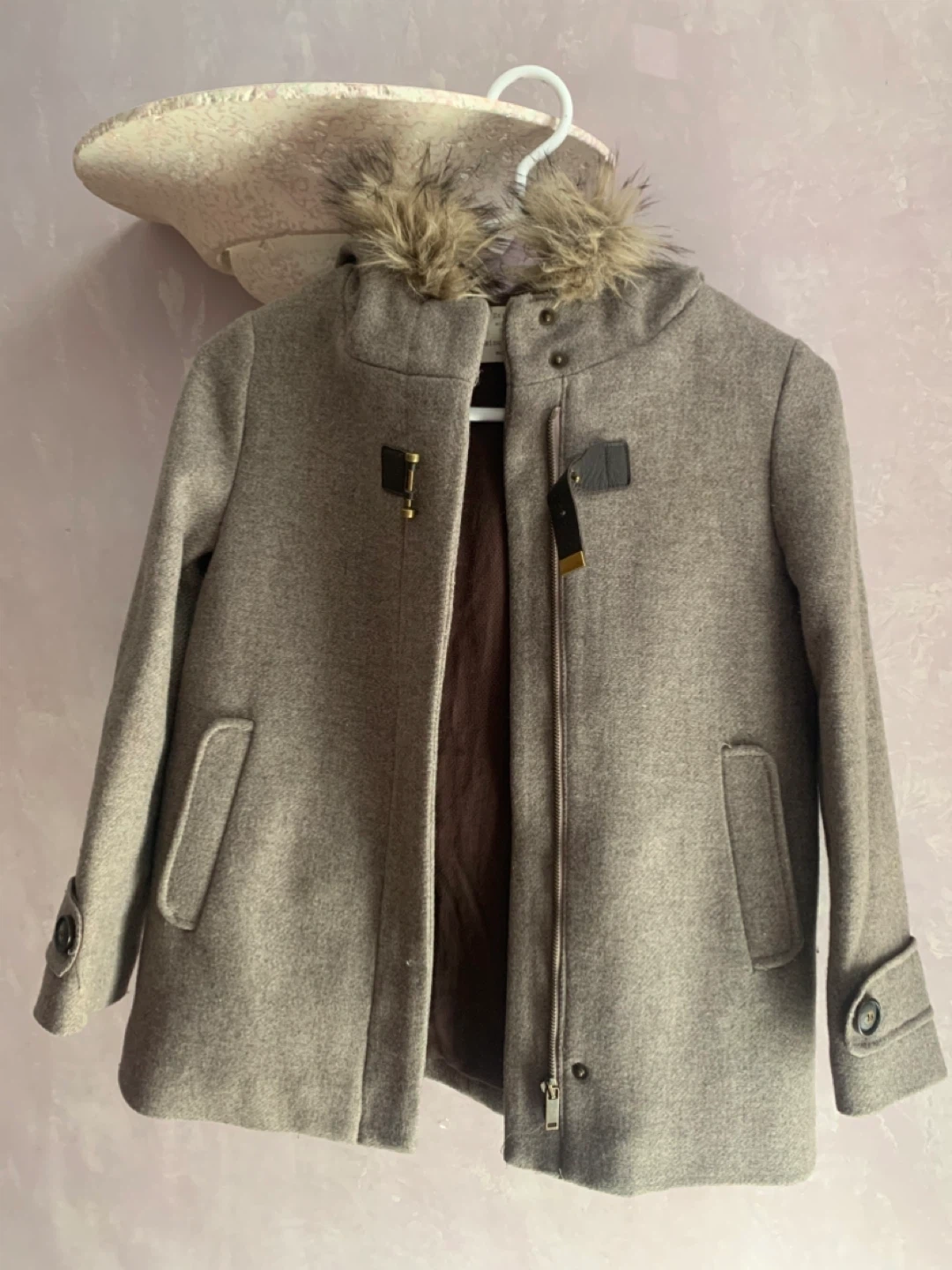 82Zara child’s Melton wool jacket Expensive quality coat with raccoon fur trim Size 9/10 Excellent condition No smoke/pets