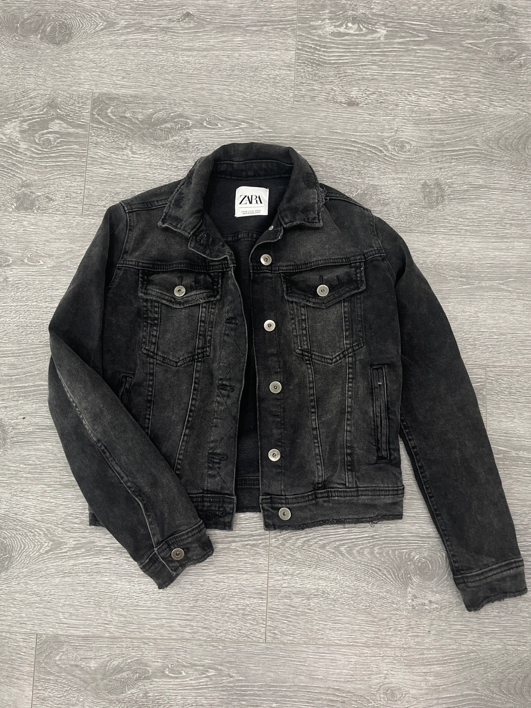 5Classic black denim jacket from Zara. It's in great condition and ready for a new home! Perfect for layering or wearing on its own during those cool Canadian evenings.