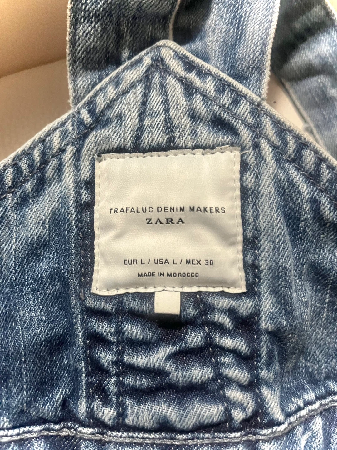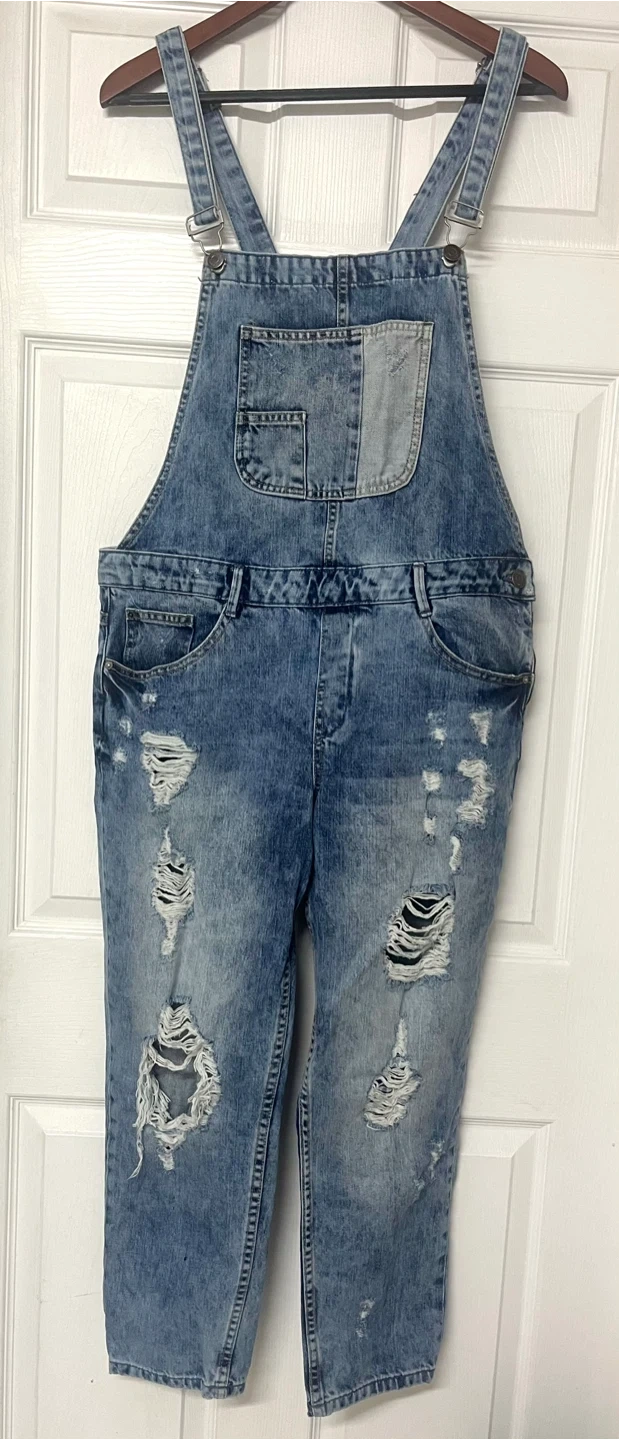 653Zara Trafaluc distressed blue denim overalls ladies size large. Pick up in Riverdale, Richmond Hill or Don Mills/Steeles.