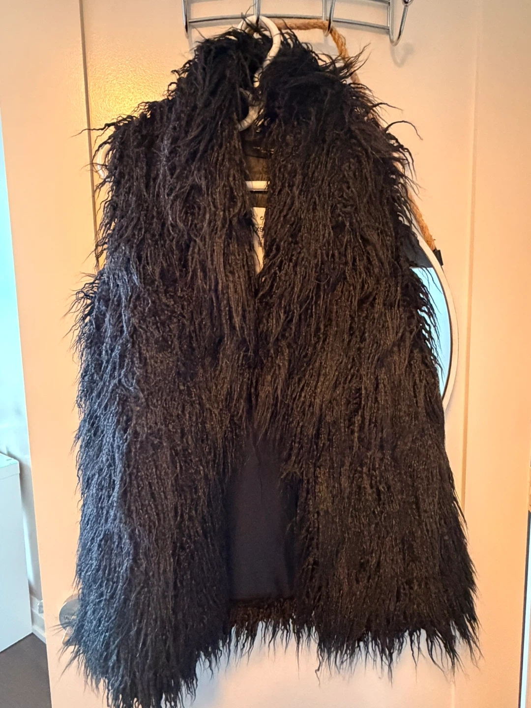 Selling a Zara faux fur vest in size XS. It's a stylish and unique piece that would add a fun texture to any outfit! Great for layering during the colder months or adding a bit of flair to your look Brand new tags on Size Xs oversized