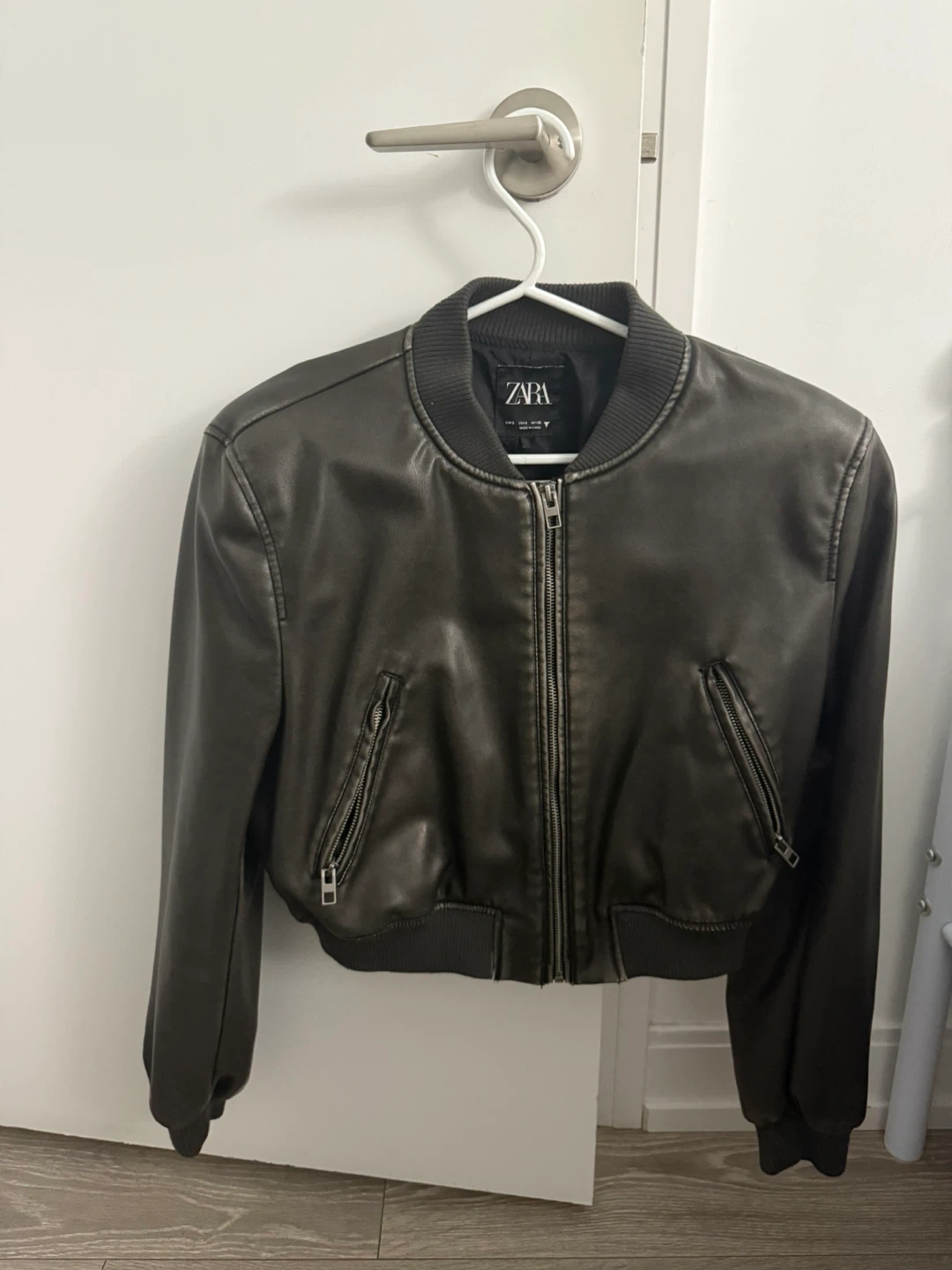 Selling a Zara leather bomber jacket in size small. It's in great condition and ready for a new home! Perfect for adding a bit of edge to your wardrobe #worn once