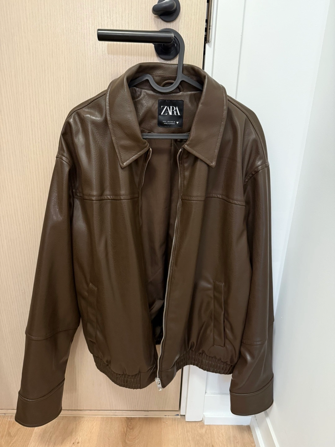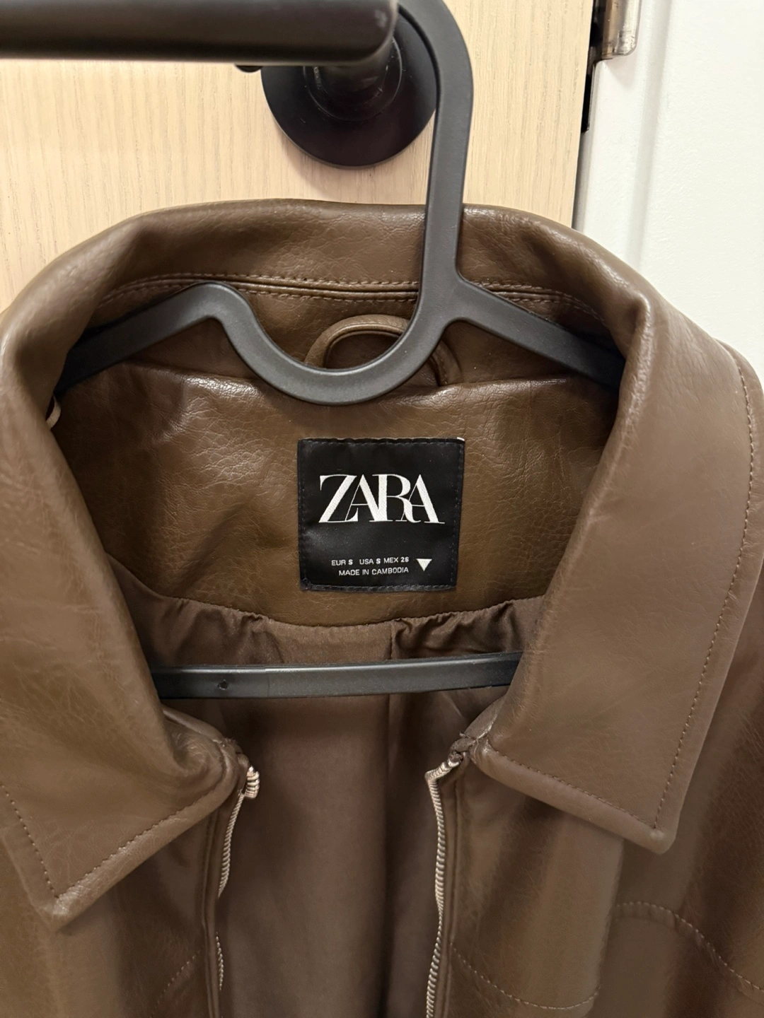 94Selling a Zara faux leather jacket in a lovely brown colour! It's a size small and in great condition. Perfect for adding a bit of edge to any outfit!