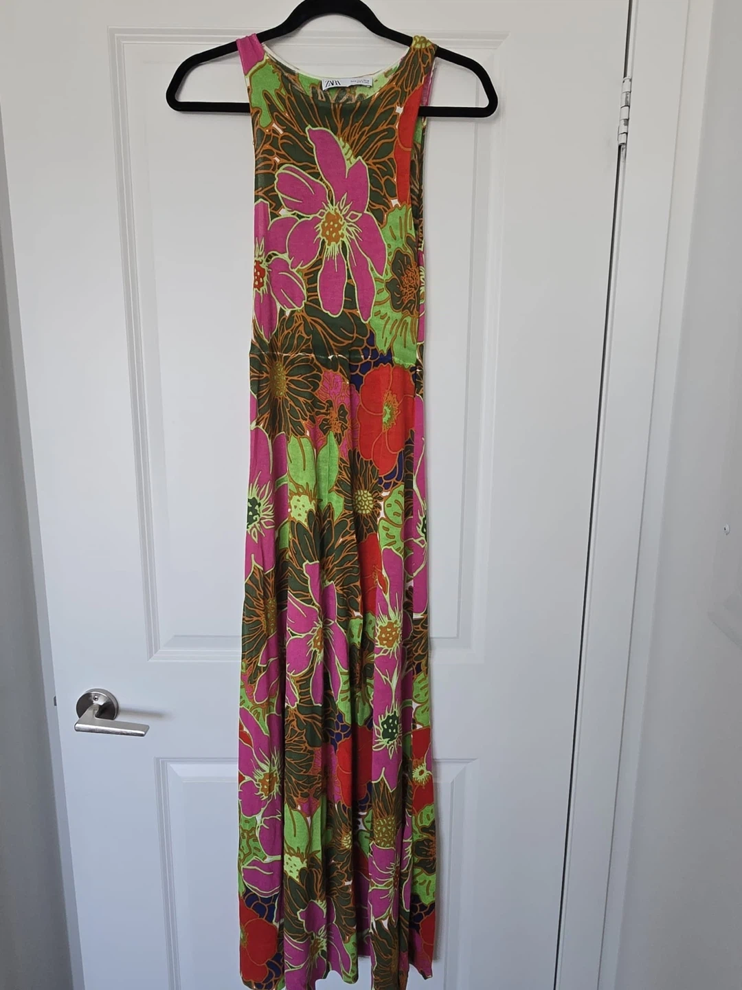 Selling a beautiful Zara maxi dress with a vibrant floral print! It's a size M and made of 87% viscose and 13% nylon. Perfect for summer days or evenings out