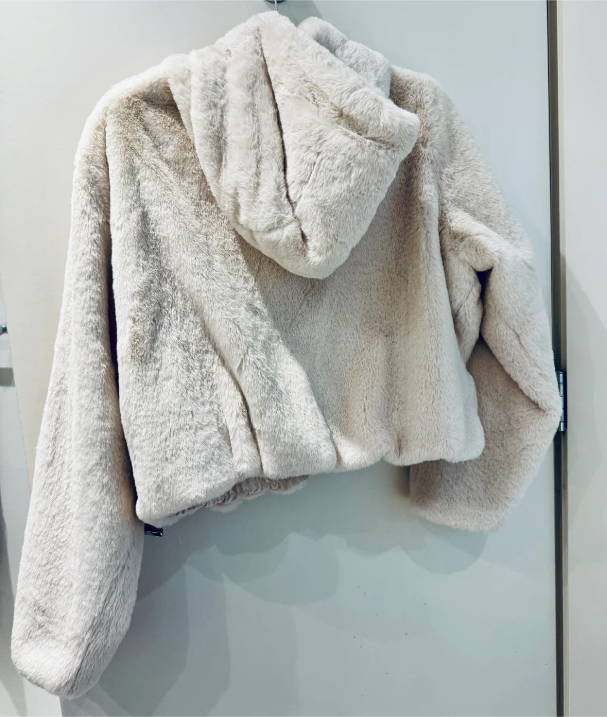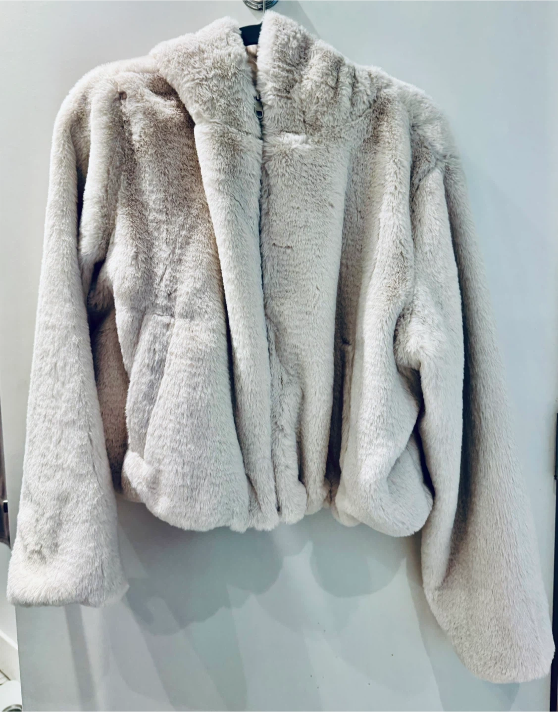 Zara Ivory Faux Fur Hoodie Jacket Size L
