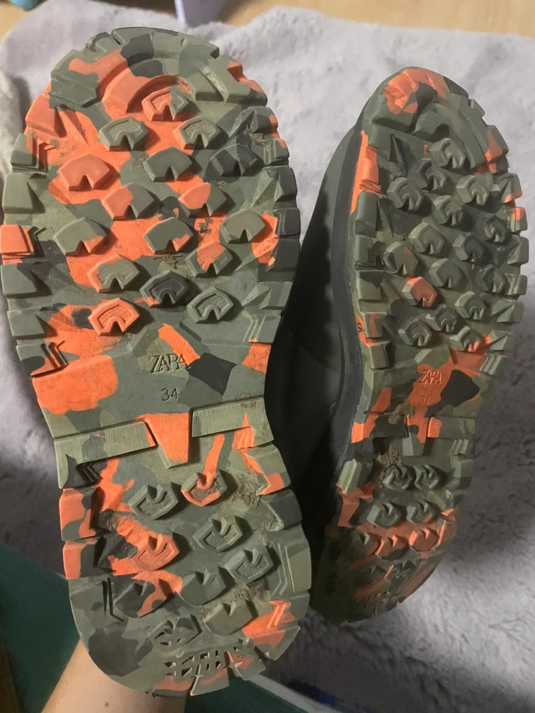 589Kids Zara boots in size 34. They have a cool camo and orange sole and grey body. Very good condition. Pick up at King St/Duffetin St