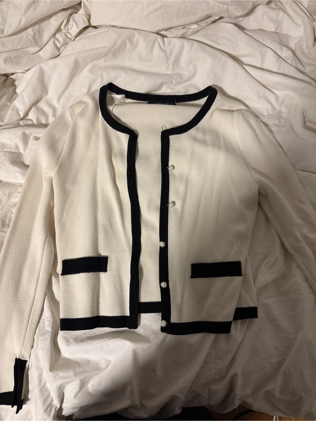 10Selling a Zara Knit cardigan in size S. It's a lovely cream colour with black trim and pearl-like buttons.