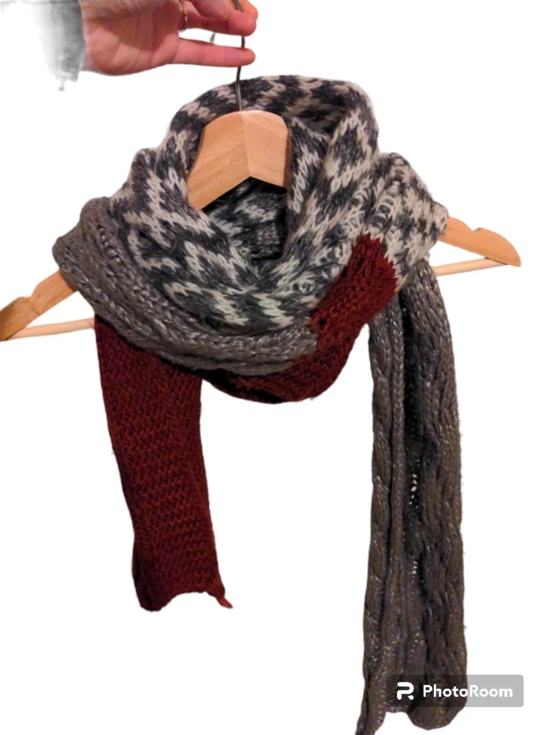 324Cozy Zara Accessories scarf in a mix of grey, white, and red tones! Perfect for adding a pop of colour and warmth to any outfit during the colder months