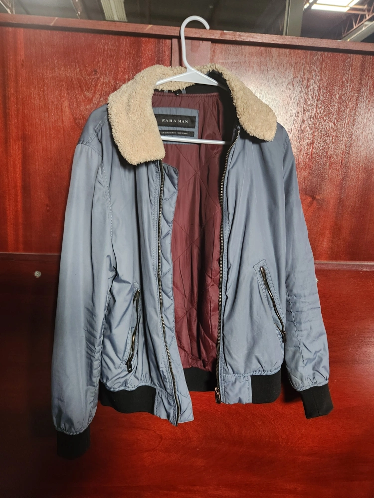 Selling a Zara Man bomber jacket in a nice blue colour! It's a size medium and features a cozy, faux fur collar. Perfect for adding a bit of style to your wardrobe!