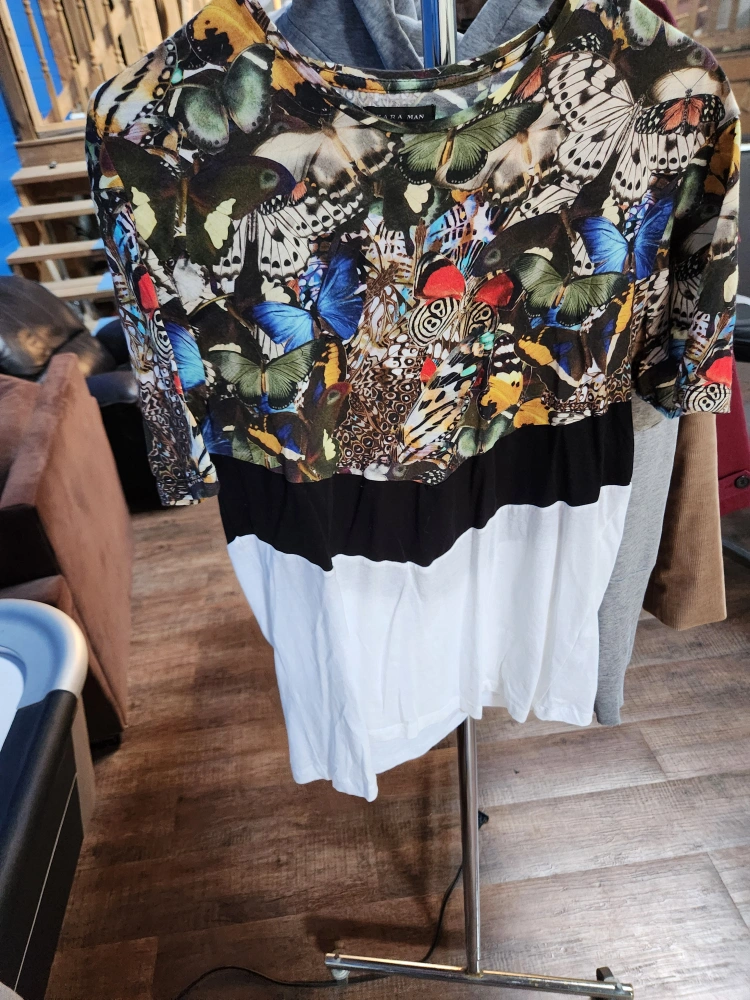 Here's a Zara Man shirt with a unique butterfly print! It features a black and white colour block design. This shirt is in great condition and ready for a new home