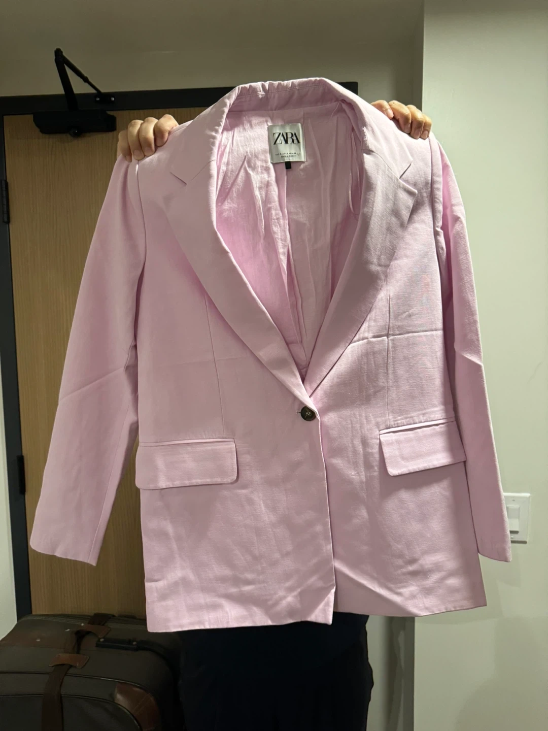 47Selling a cute Zara pink blazer in size small! It's in great condition and perfect for adding a pop of colour to your wardrobe. The blazer is a soft pink colour and made from a comfortable material. It features a classic blazer design with a single button closure and two front pockets. Feel free to ask any questions!