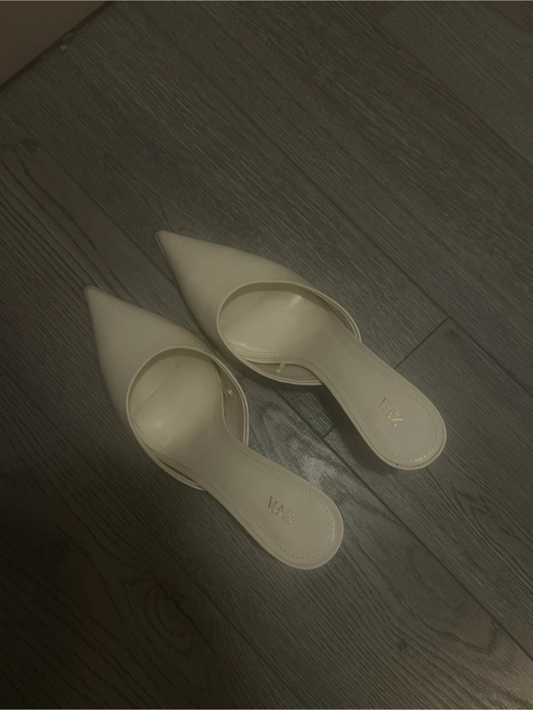 222Selling a pair of Zara pointed heeled mules. They're a beautiful cream colour and in great condition. Size 7.