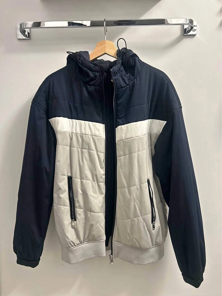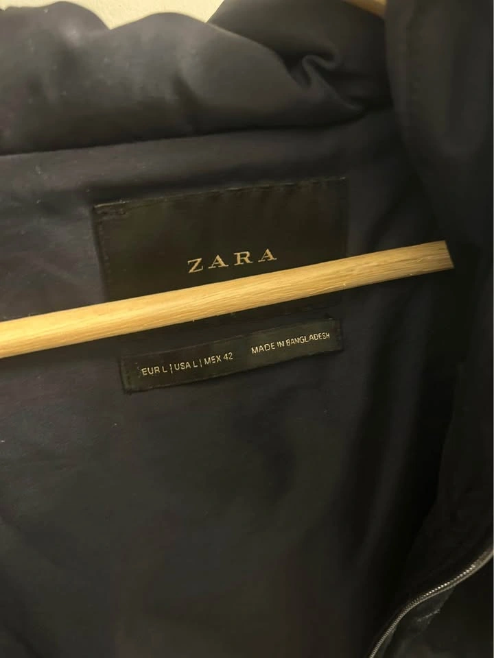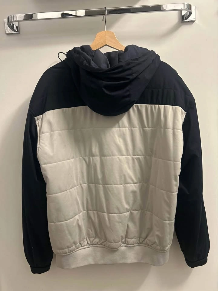 65Comfy and stylish ZARA color-block puffer jacket with a zip-up front and hoodie. Has zip pockets, drawstrings, and a fitted hem and cuffs to keep you warm. Great for fall or winter. Gently used, still in great shape Size: Large (EUR L / USA L / MEX 42)