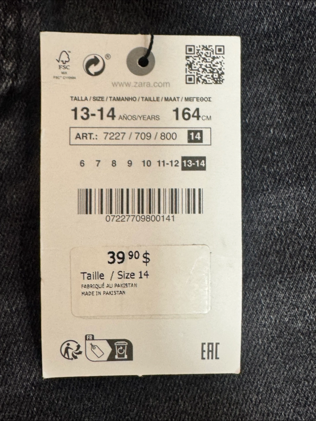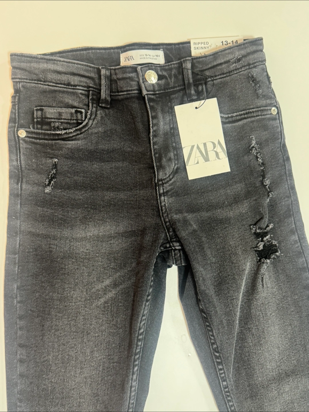 Selling a pair of Zara ripped skinny jeans in size 13-14. Never worn and the tag is still attached. Originally bought for $39.90! I have also sell same thing blue color