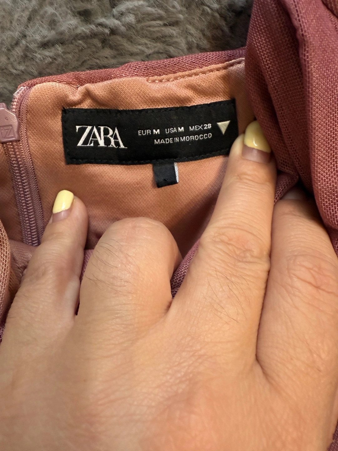 Selling a Zara ruched tulle dress in a beautiful two-tone colour. The dress is a size M and made in Morocco. It's in great condition and ready for a new home!