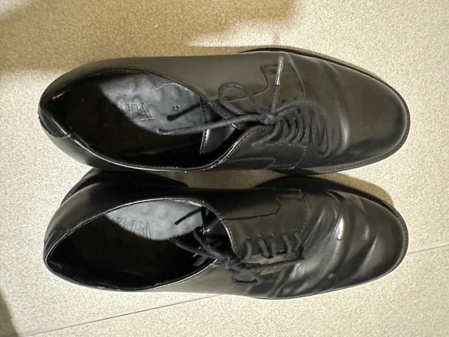 10Elevate your style with these Zara black dress shoes, size 42, perfect for any formal or business occasion. These shoes have been worn and show signs of wear, but they still have plenty of life left. Grab these stylish and budget-friendly shoes today! Looking for a sole-mate? These shoes might just be the right fit! But hurry, because if the ad is still up, these beauties are still available!