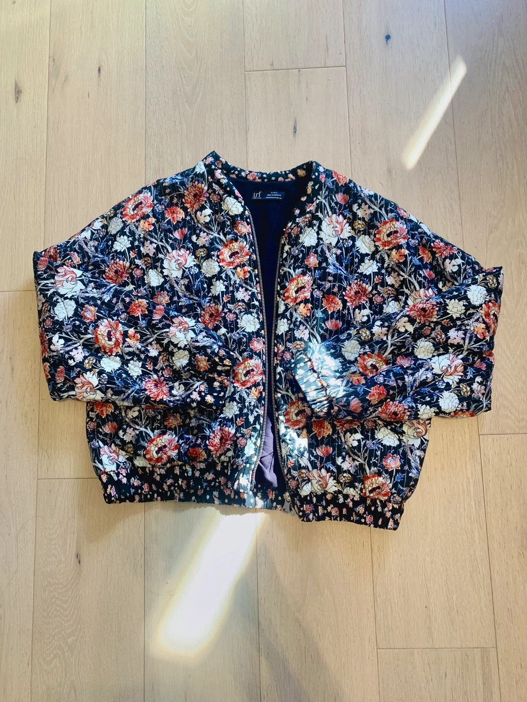 31Selling a Zara TRF Collection bomber jacket in size M with thin cotton inside. Only worn twice. Perfect condition. Length 53cm Chest 104cm