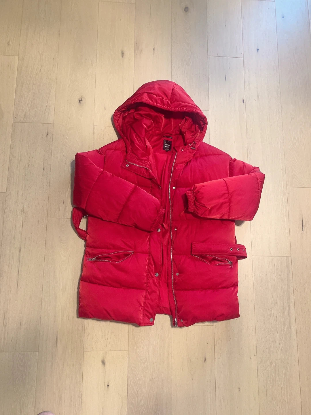 31Selling a Zara TRF Outerwear puffer jacket in a vibrant red colour! It's in great condition and perfect for keeping warm during the colder months. Perfect condition The size is S. Length 72cm Chest 110cm