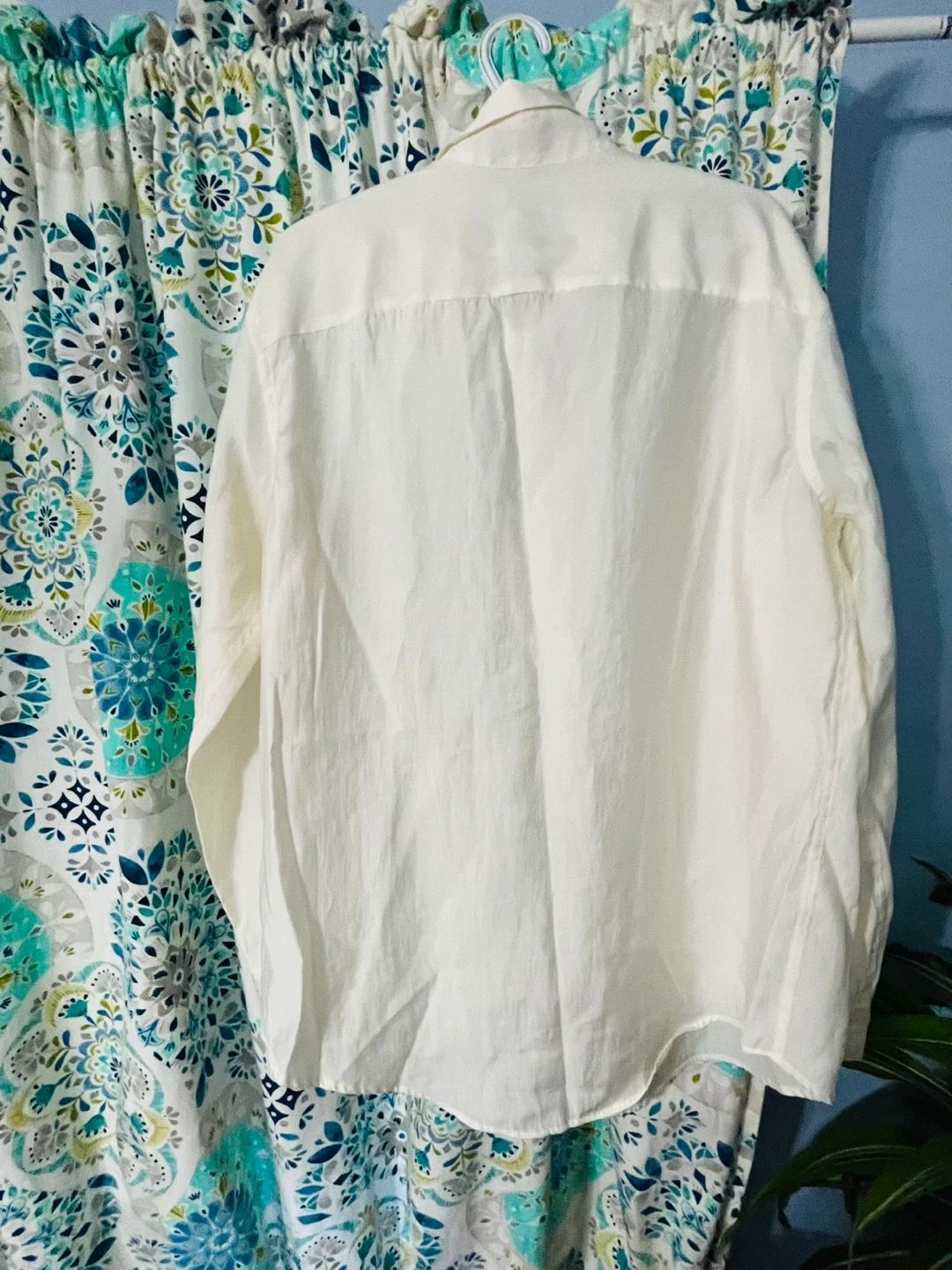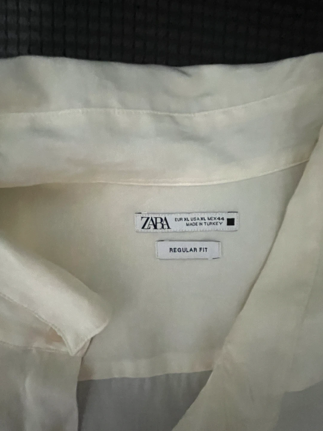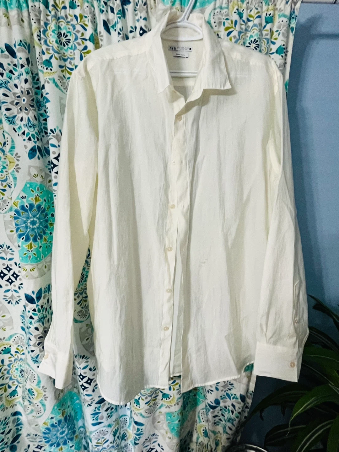 235Selling a Zara white button-up shirt in size XL. It's in good condition and perfect for a casual or semi-formal look. There are some small stains on the front can be remove by washing or bleach.