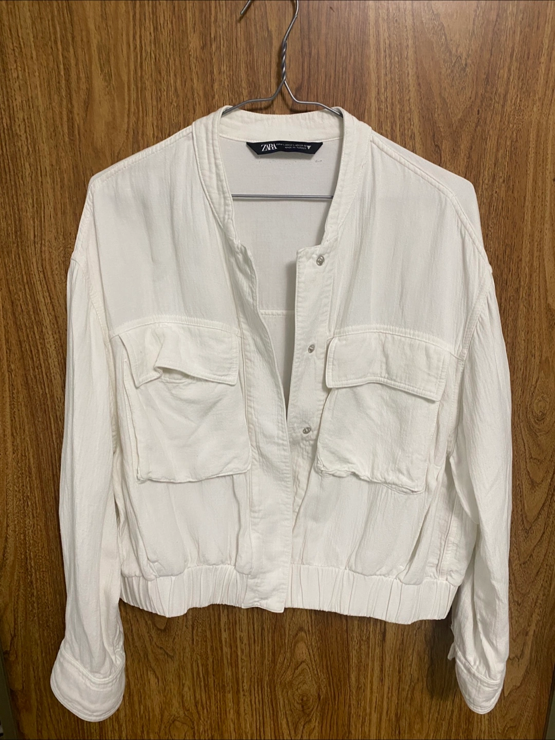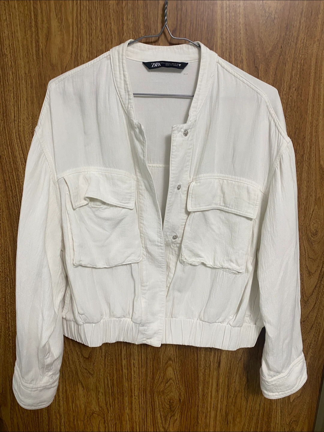 Here's a stylish white jacket from Zara! It's in great condition and ready for a new home. Perfect for layering or wearing on its own, it's a versatile piece for any wardrobe