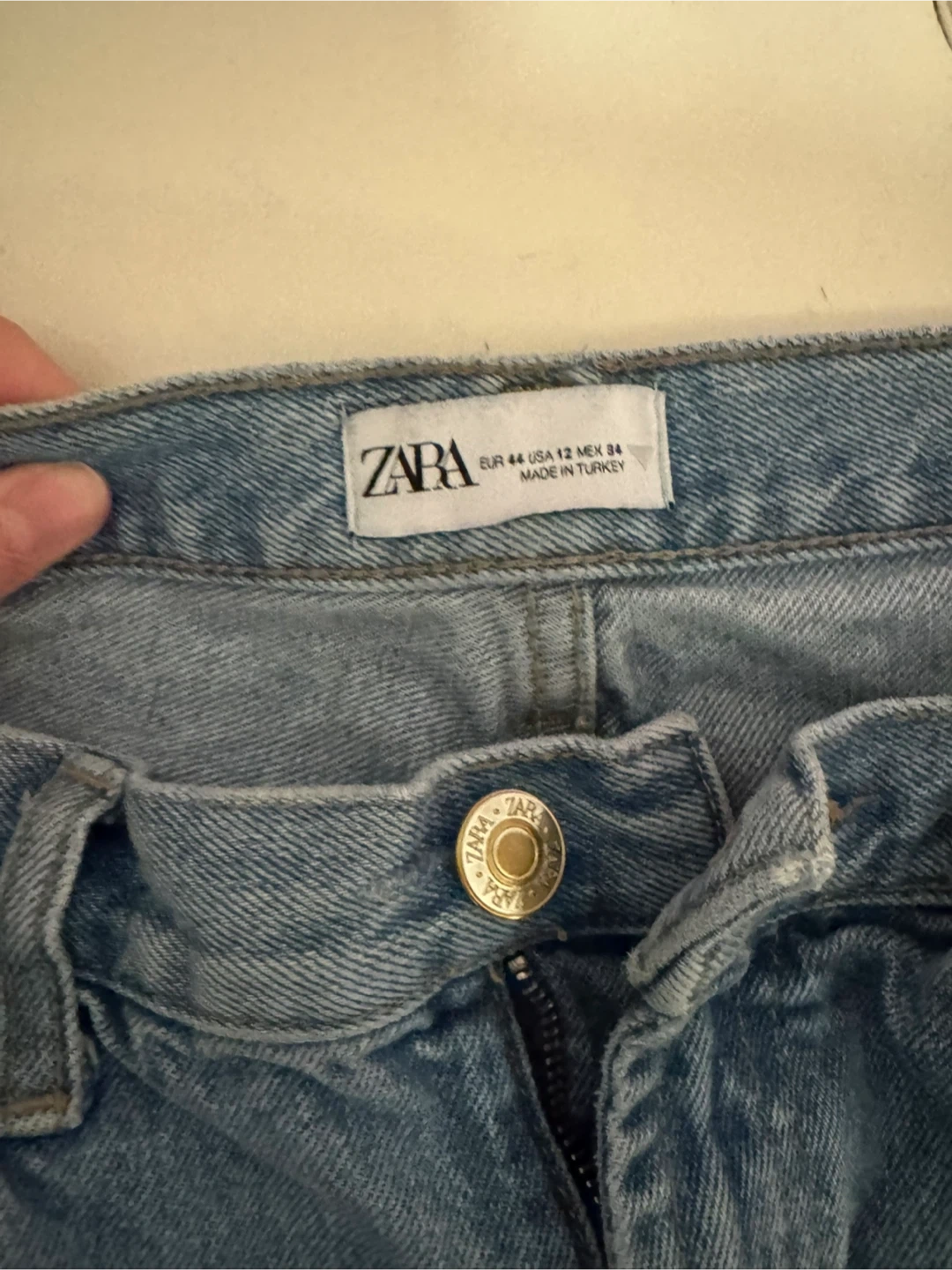 Selling a pair of Zara wide leg jeans in size 12! They're in great condition and ready for a new home. These jeans are super stylish and perfect for a casual look. The material is denim and they're a light wash colour. Feel free to message me with any questions!