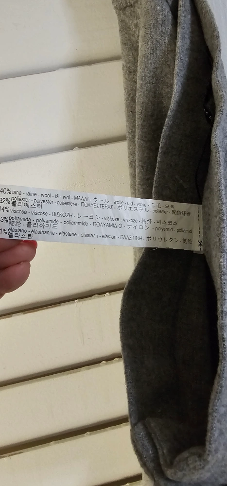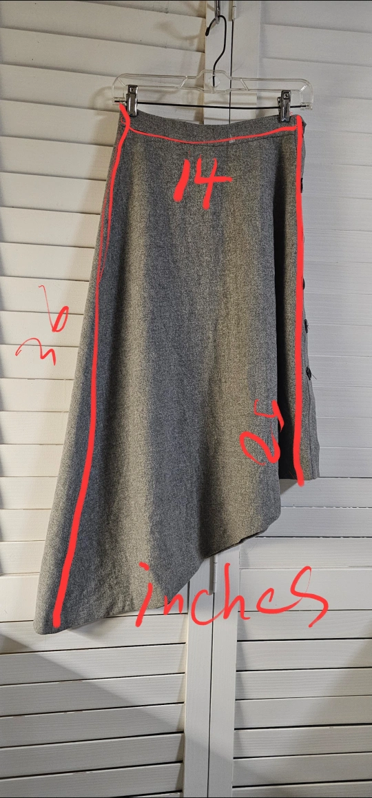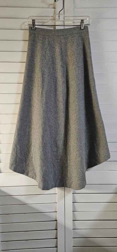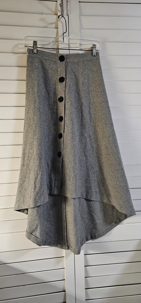 Grey wool blend skirt. Asymmetrical hemline. Button front closure. Size XS. Made in Morocco.