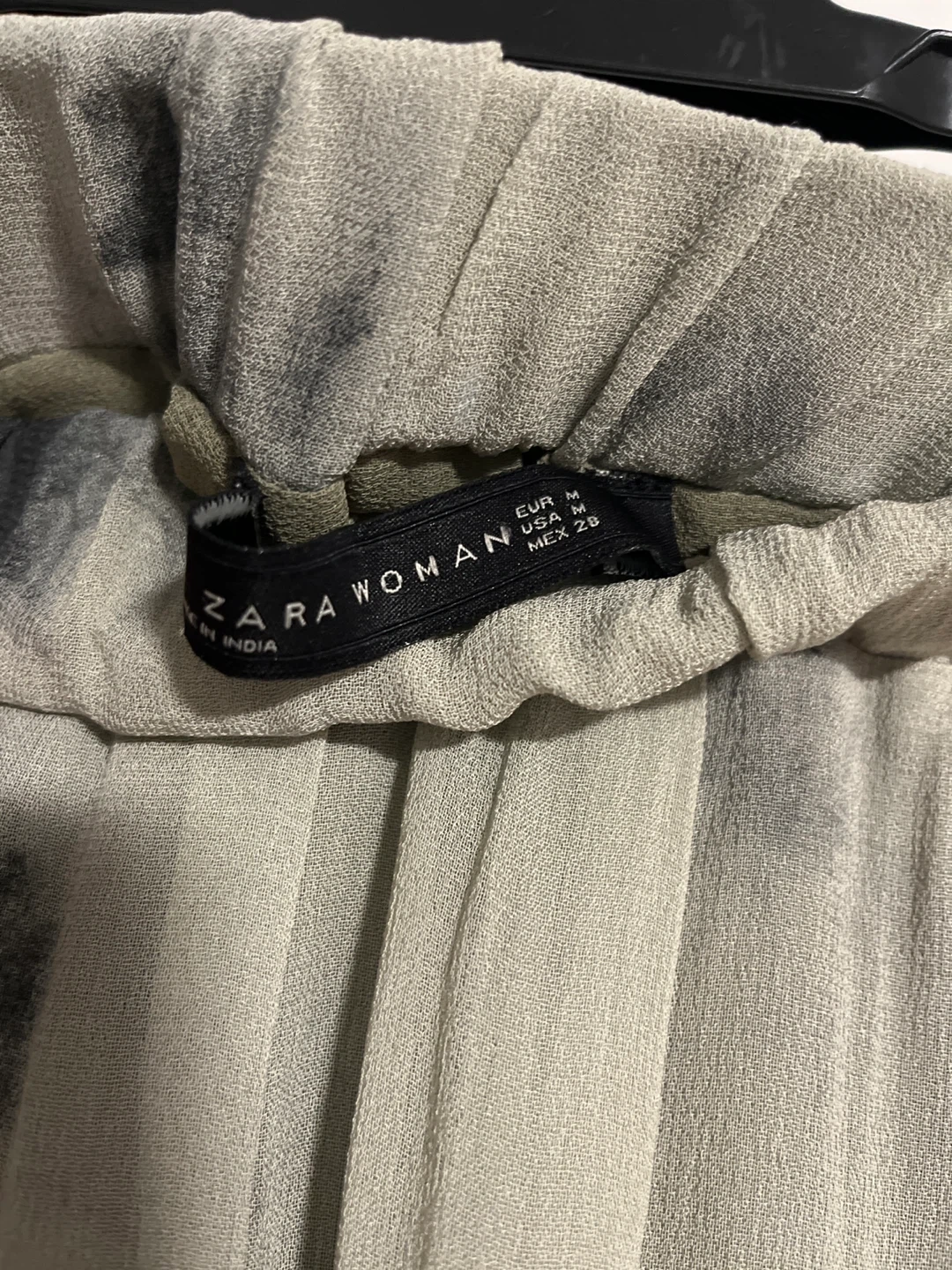 49Selling a Zara Woman pleated skirt in size M. It's made of 100% viscose for the exterior and lining. The skirt features a unique tie-dye pattern in shades of grey and green. Perfect for adding a touch of bohemian flair to your wardrobe!