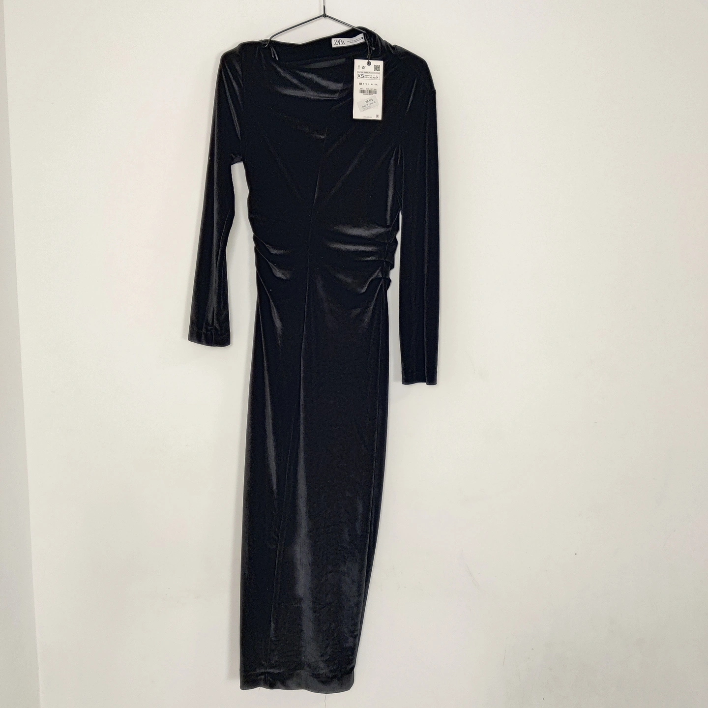 Zara Women's Ruched Velvet Maxi Dress Size XS Bodycon NEW