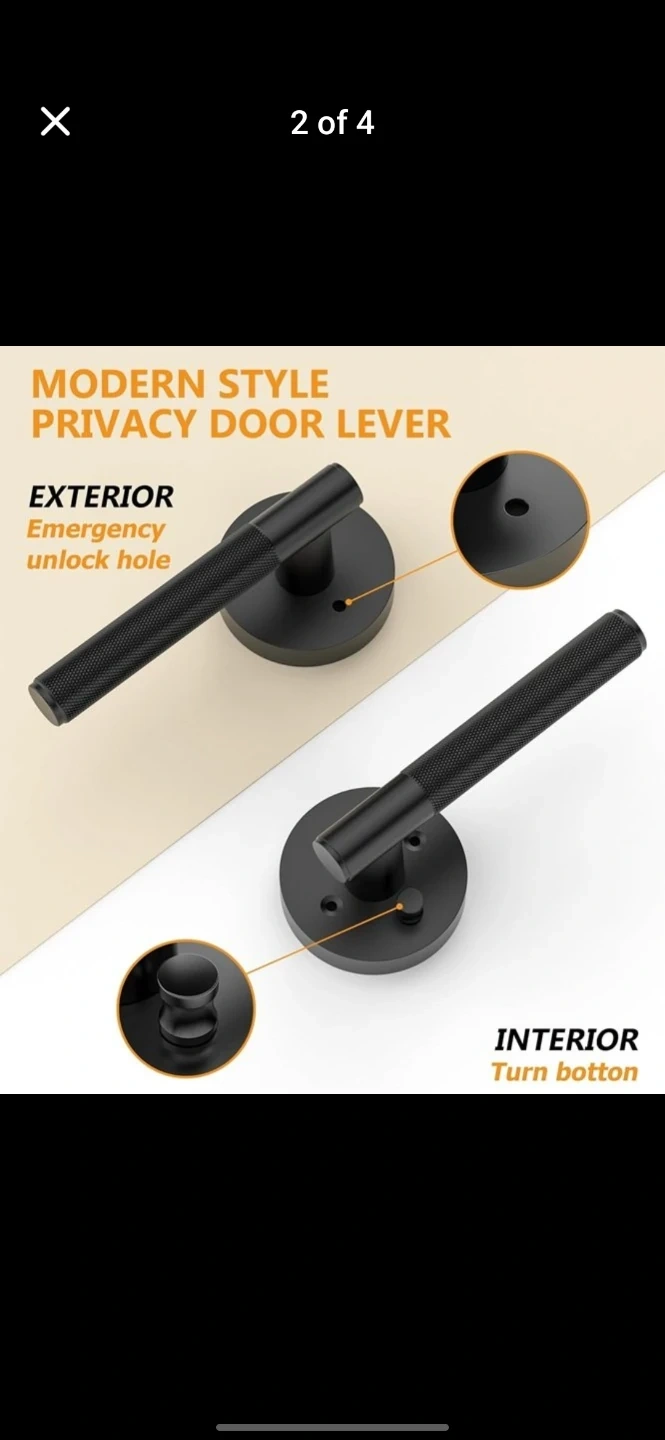 2 Modern Style Privacy Door Lever Set - Black