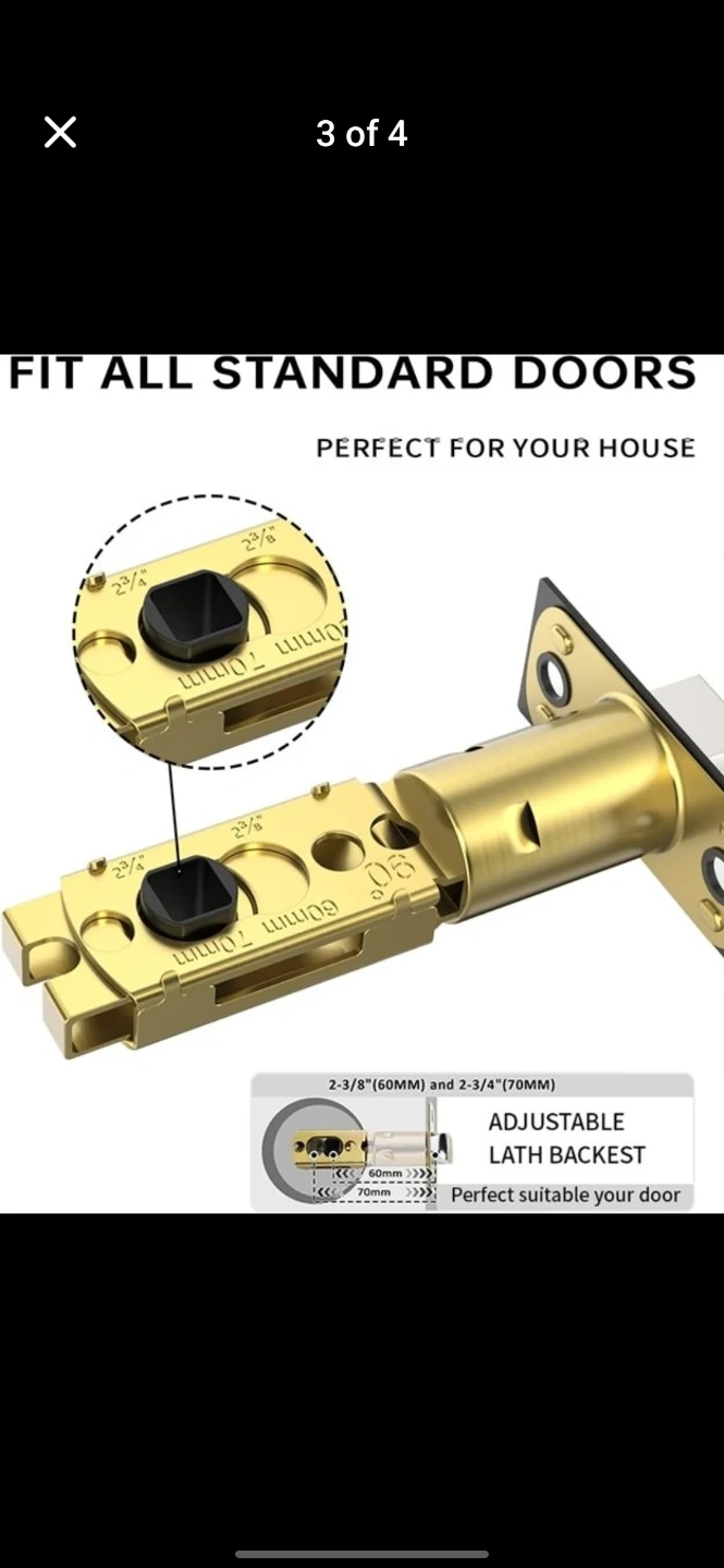 This modern style privacy door lever set is black. It fits all standard doors and features an adjustable latch backset for 2-3/8" (60mm) or 2-3/4" (70mm) doors. The exterior has an emergency unlock hole and the interior has a turn button.