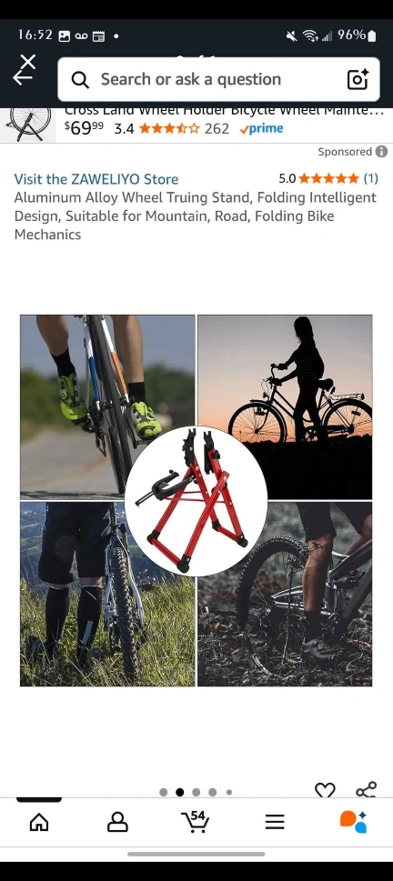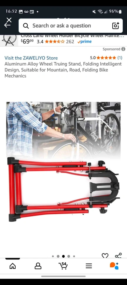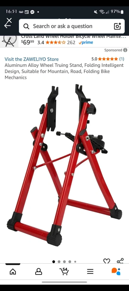 246Selling a ZAWELIYO aluminum alloy wheel truing stand. It's designed for mountain, road, and folding bike mechanics. The stand is red and appears to be in great condition. It features an intelligent design suitable for bicycle wheel maintenance.