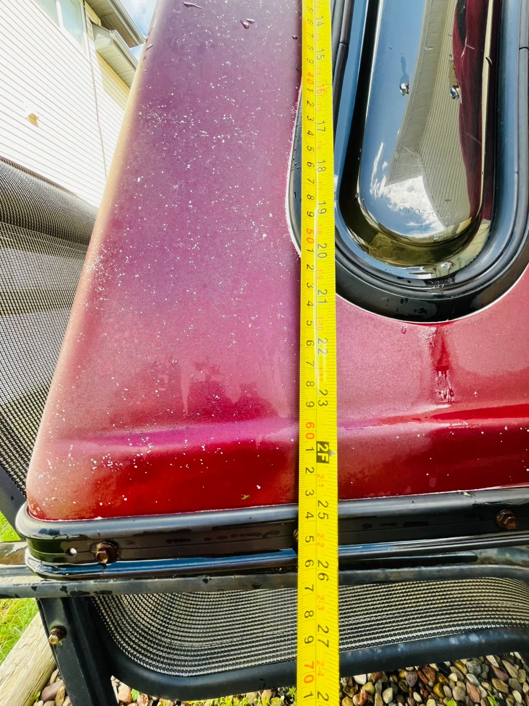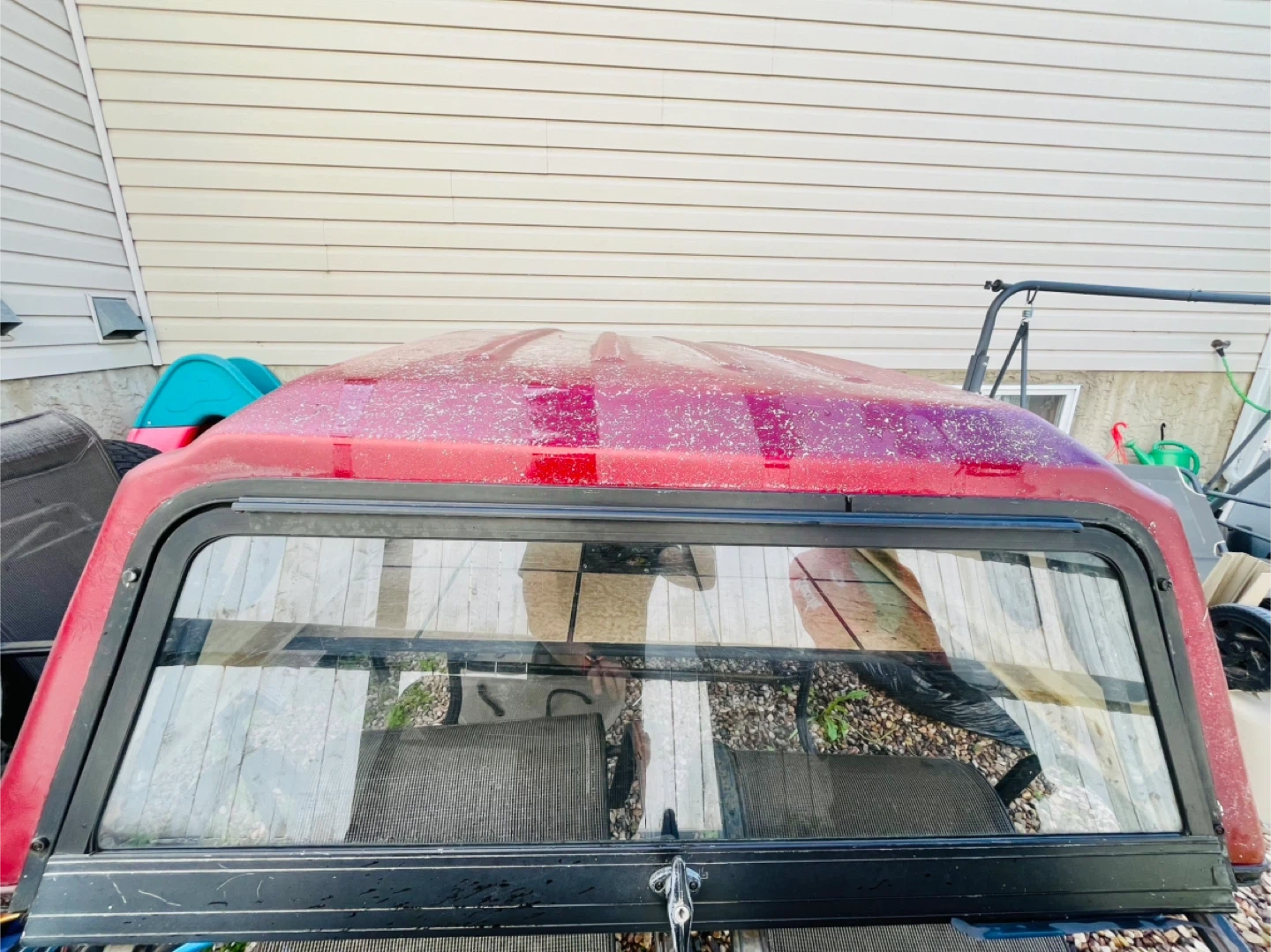 This is a red truck cap with side and rear windows. It's manufactured in Canada. It's ready to go on your truck!