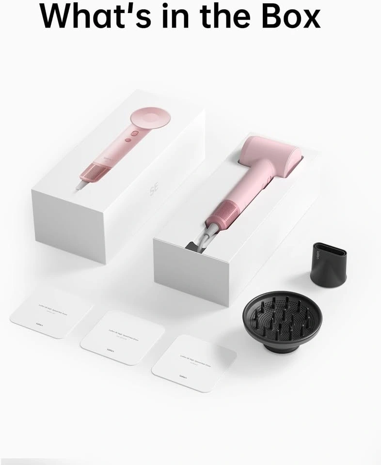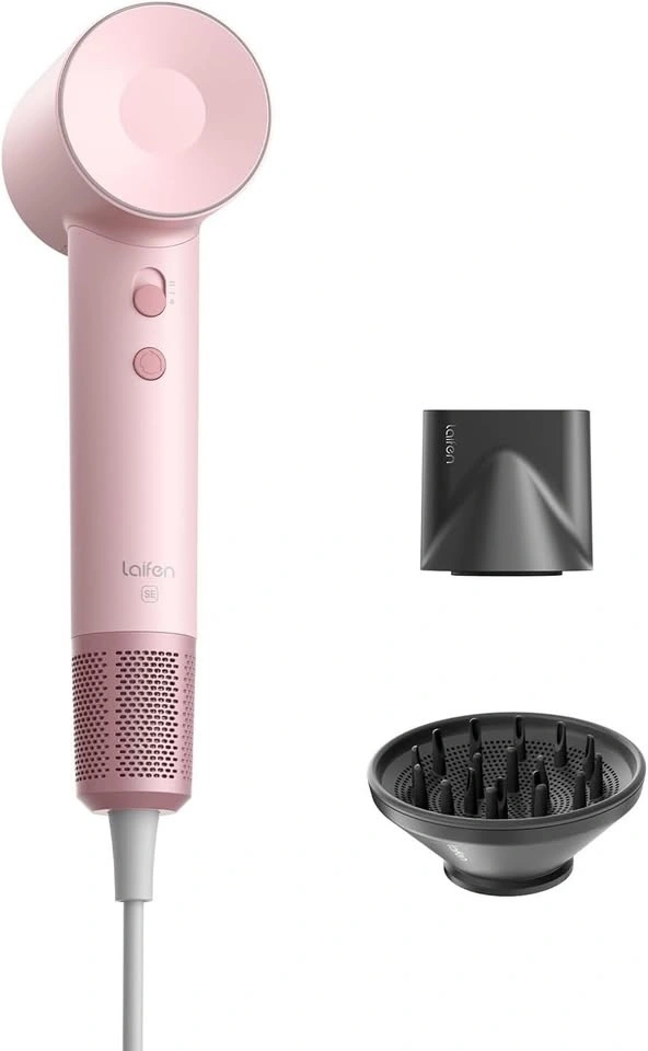 Laifen Hair Dryer SE, Blow Dryer with Diffuser & Nozzle for Curly Hair, 200M Ionic Hair Dryer with 105,000 RPM Low Noise Brushless Motor for High-Speed Drying, for Travel & Home 2024 Upgraded (Pink)