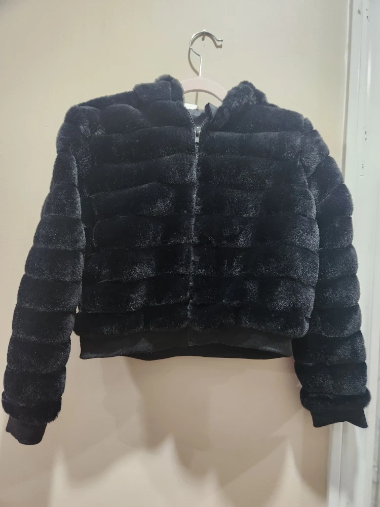 Shein Black Faux Fur Hooded Jacket - Size 9Y