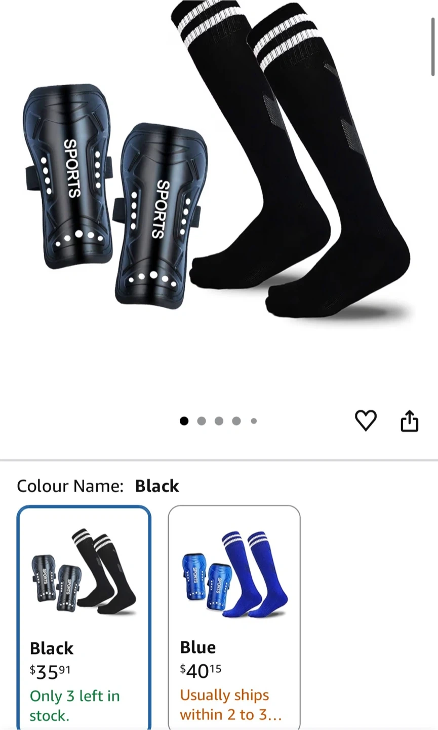 These Hryr bay shin guards are black. They come with a pair of black socks. These are great for soccer players looking for protection.
