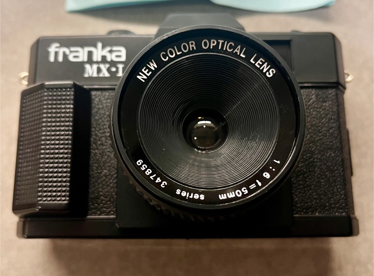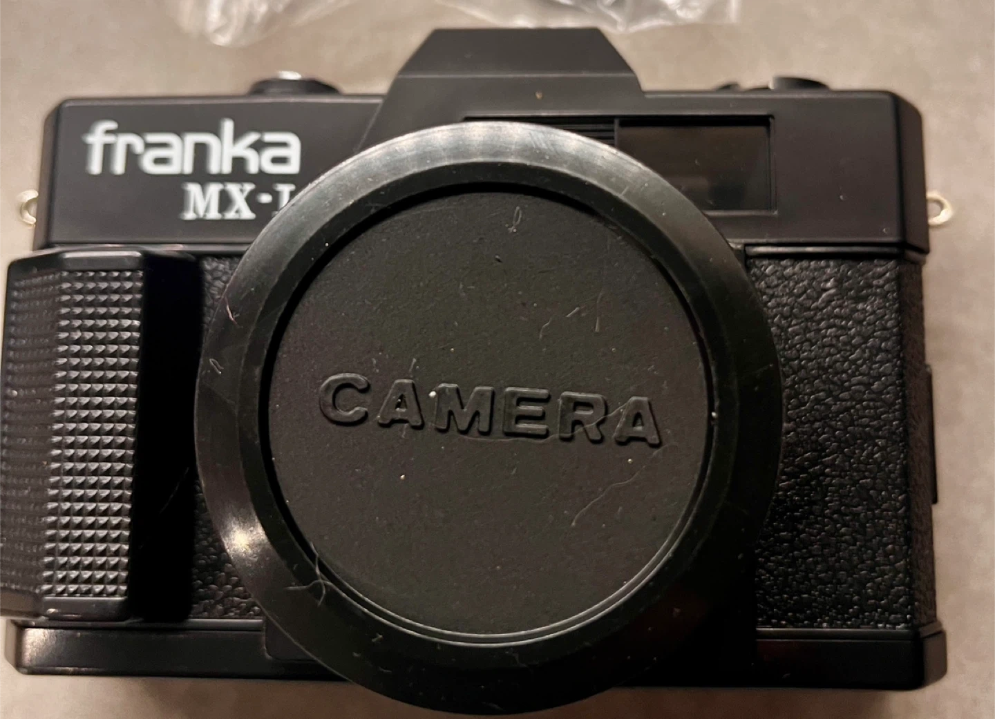 This is a Franka MX-1 film camera with a 50mm lens. It's a classic camera for capturing moments. It includes a lens cap.