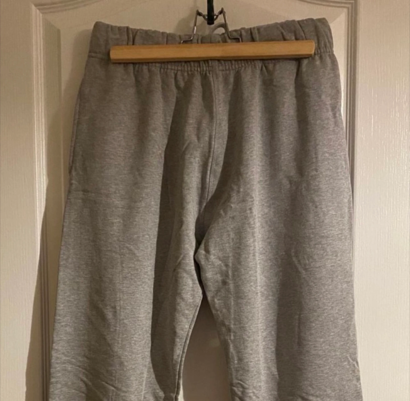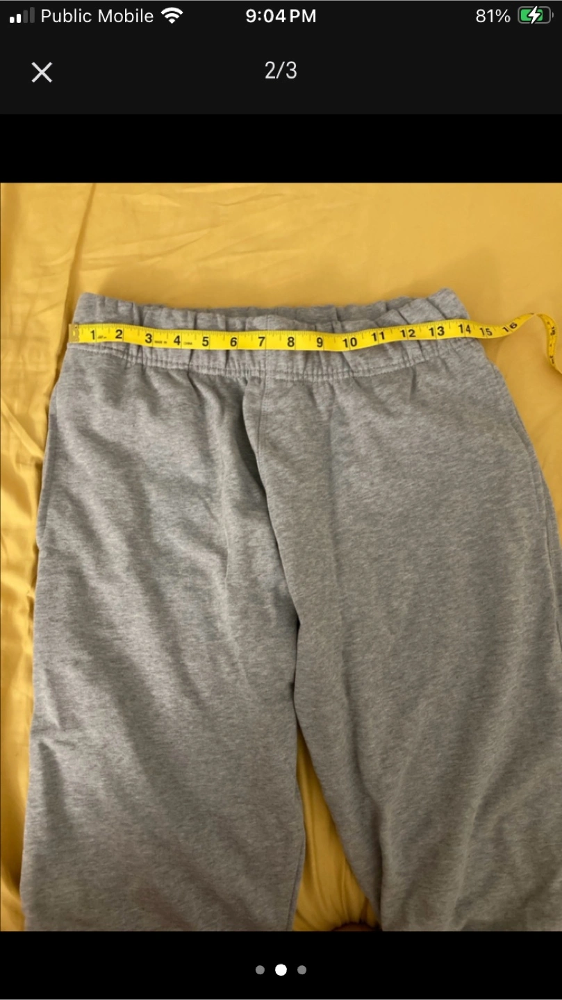 These are a size small, which is supposed to be equivalent to a women’s medium. Waist measurement is 28”, so is the inseam. These sweats have 3 pockets. They are more of a light blue-grey, like in photos 3-4. They’re a relaxed fit. They feel like good quality in comparison to their fleece version of the same style that is still on Kotn’s website.
