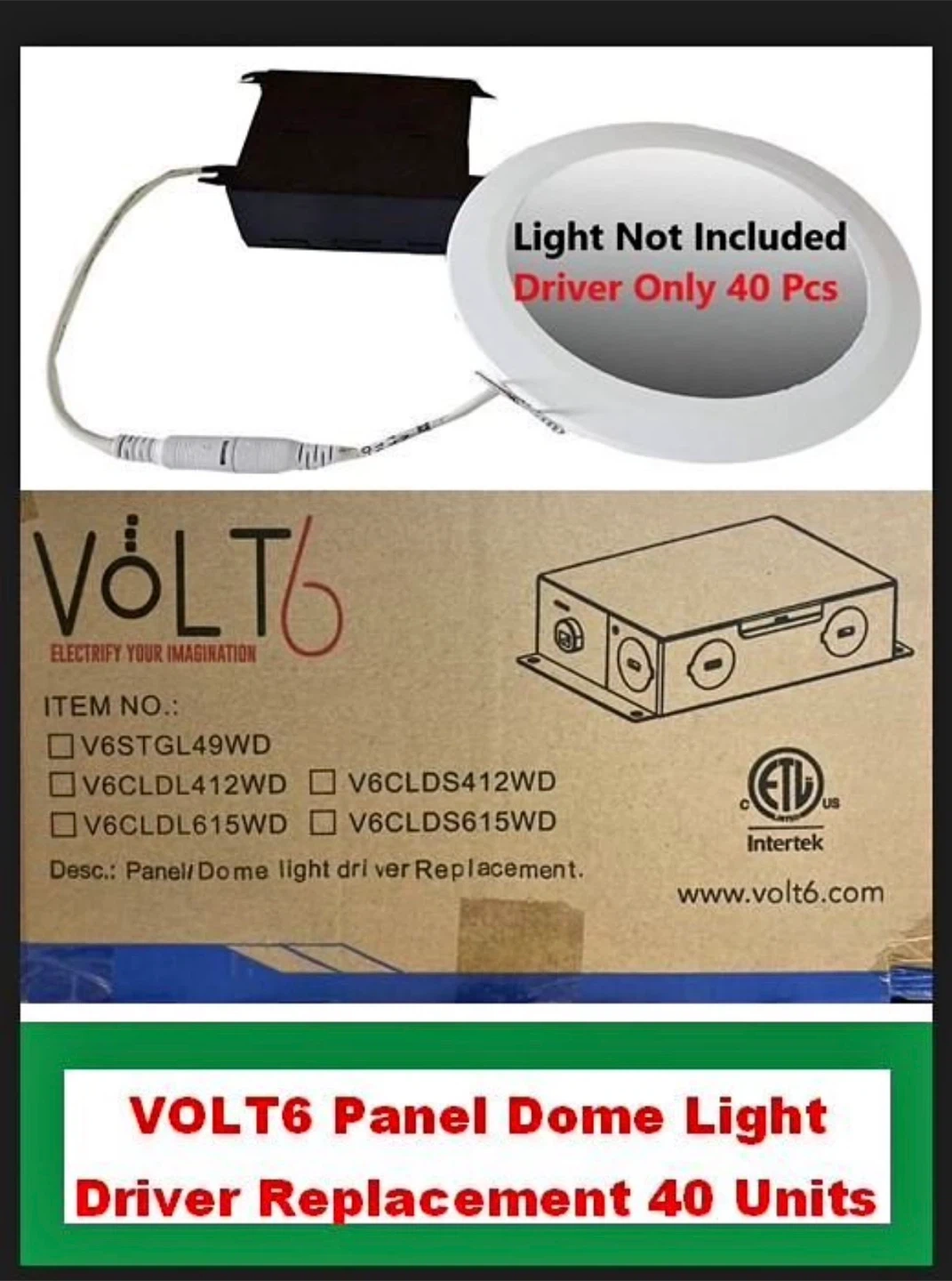 This is a 40-piece set of VOLT6 panel or dome light driver replacements. They're designed for electrical applications. Includes original packaging.