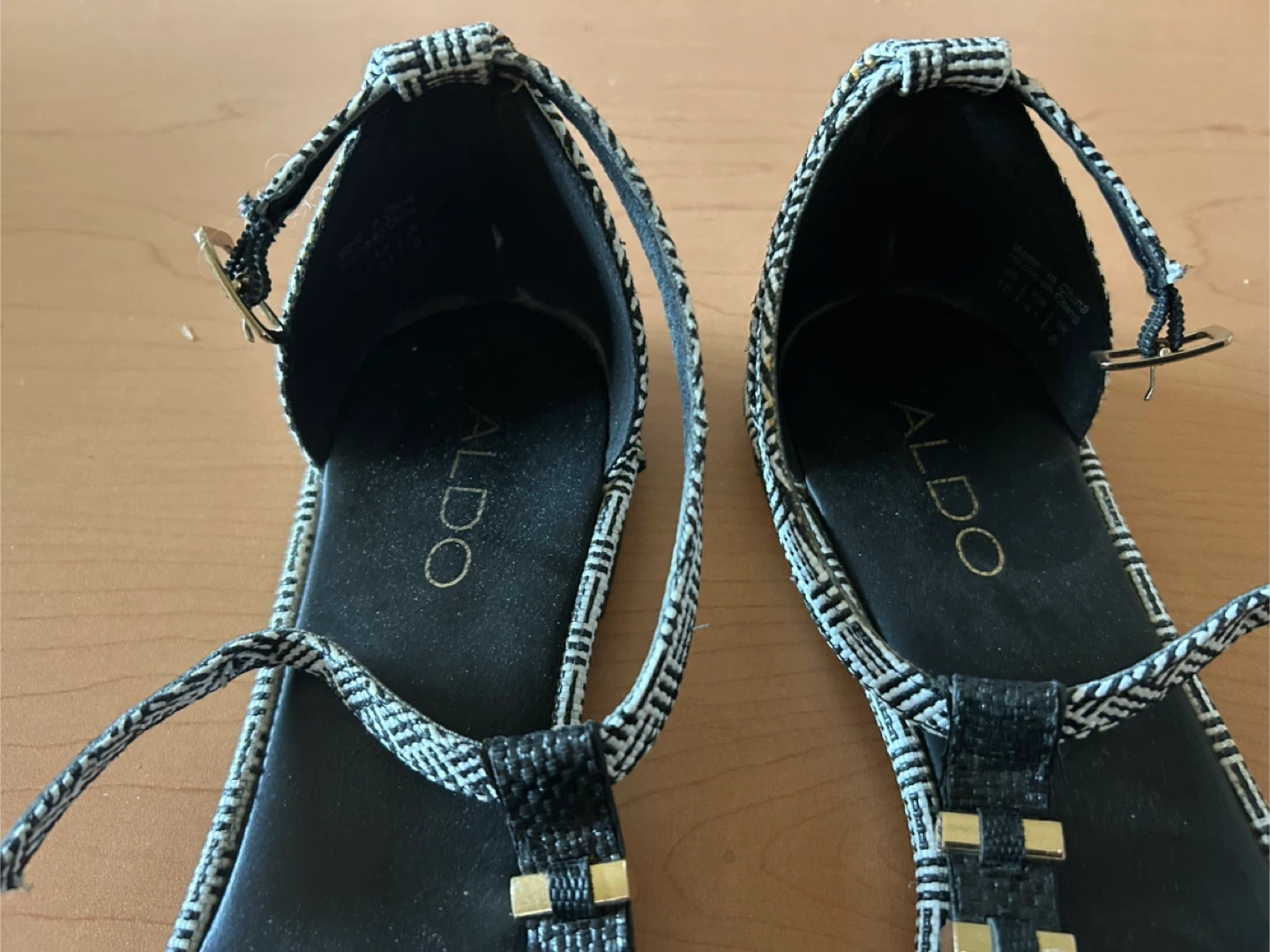 10 size ALDO Women's Black and White Patterned Flat Sandals